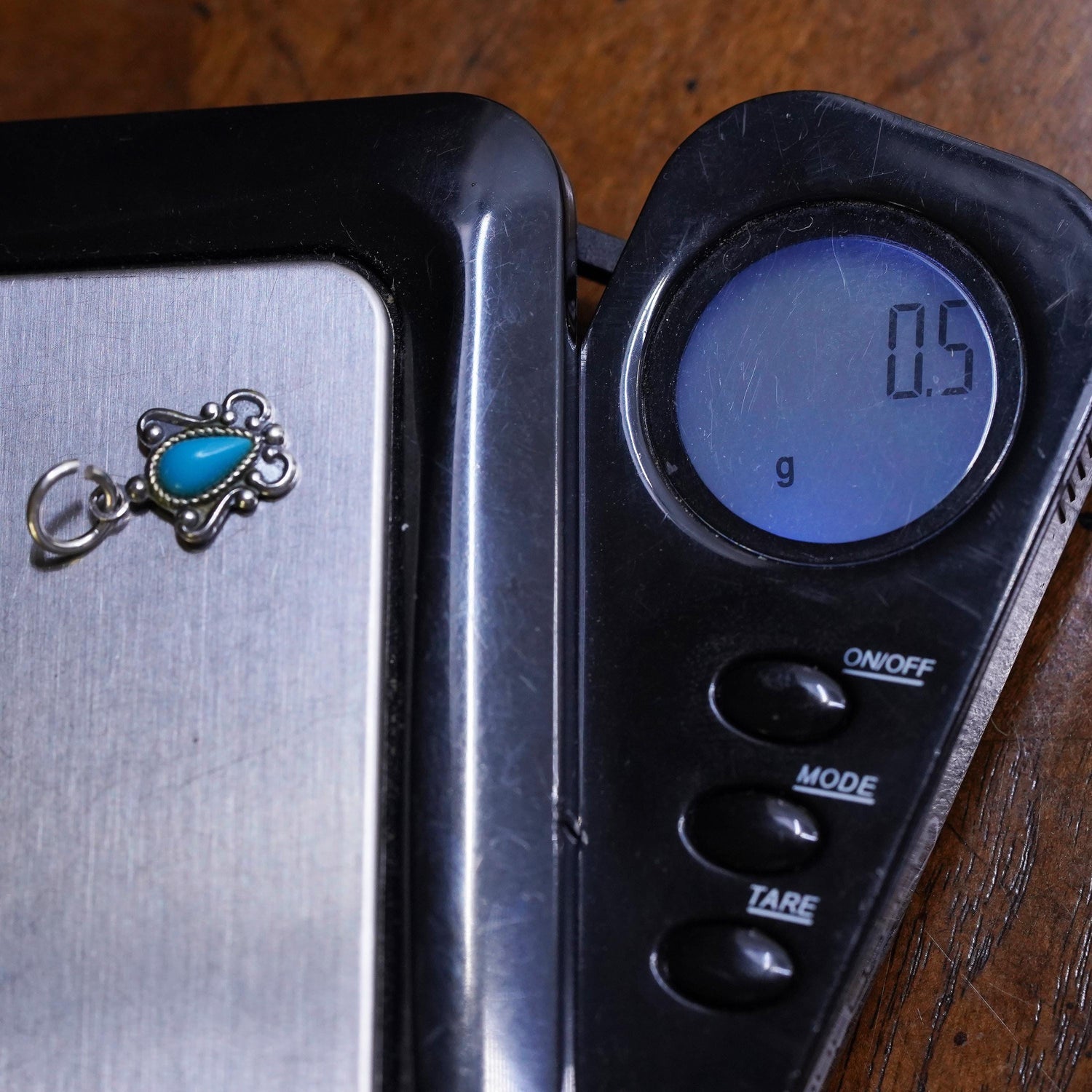 Southwestern sterling 925 silver handmade turquoise charm pendant with beads, silver tested