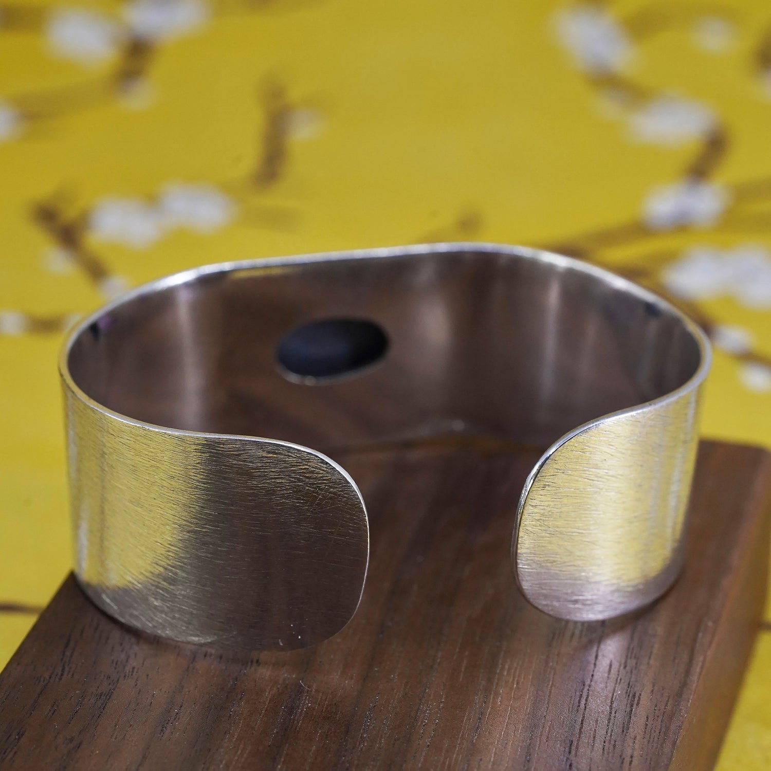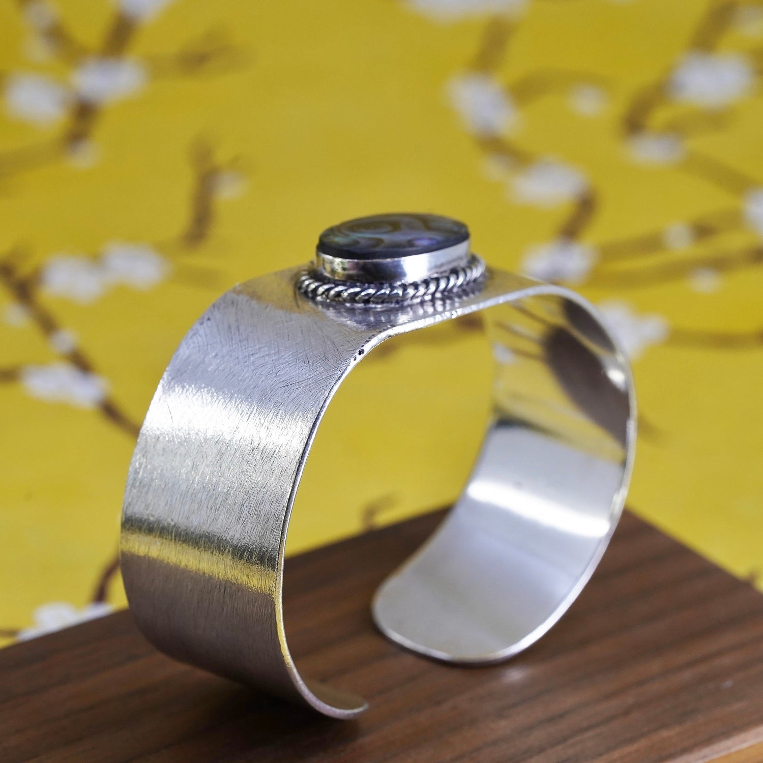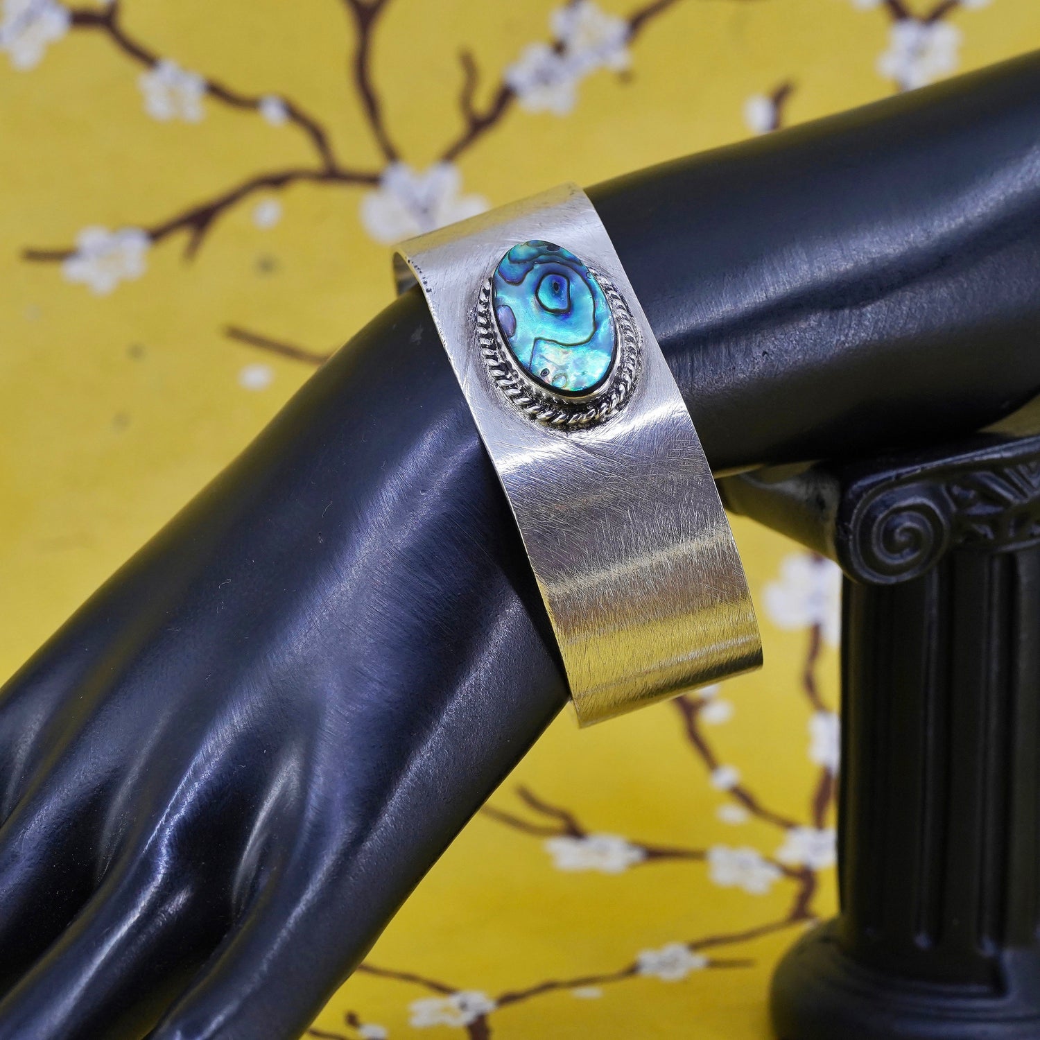 Vintage southwestern Sterling 925 silver handmade wide cuff bracelet with oval abalone, silver tested