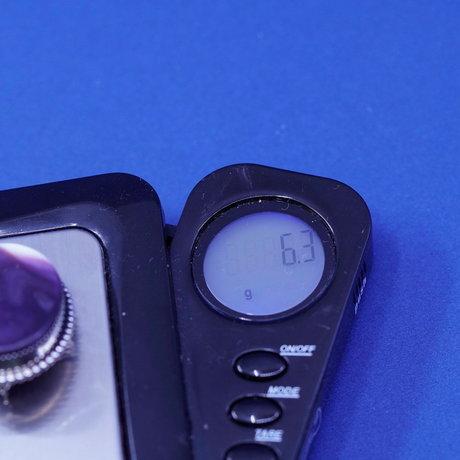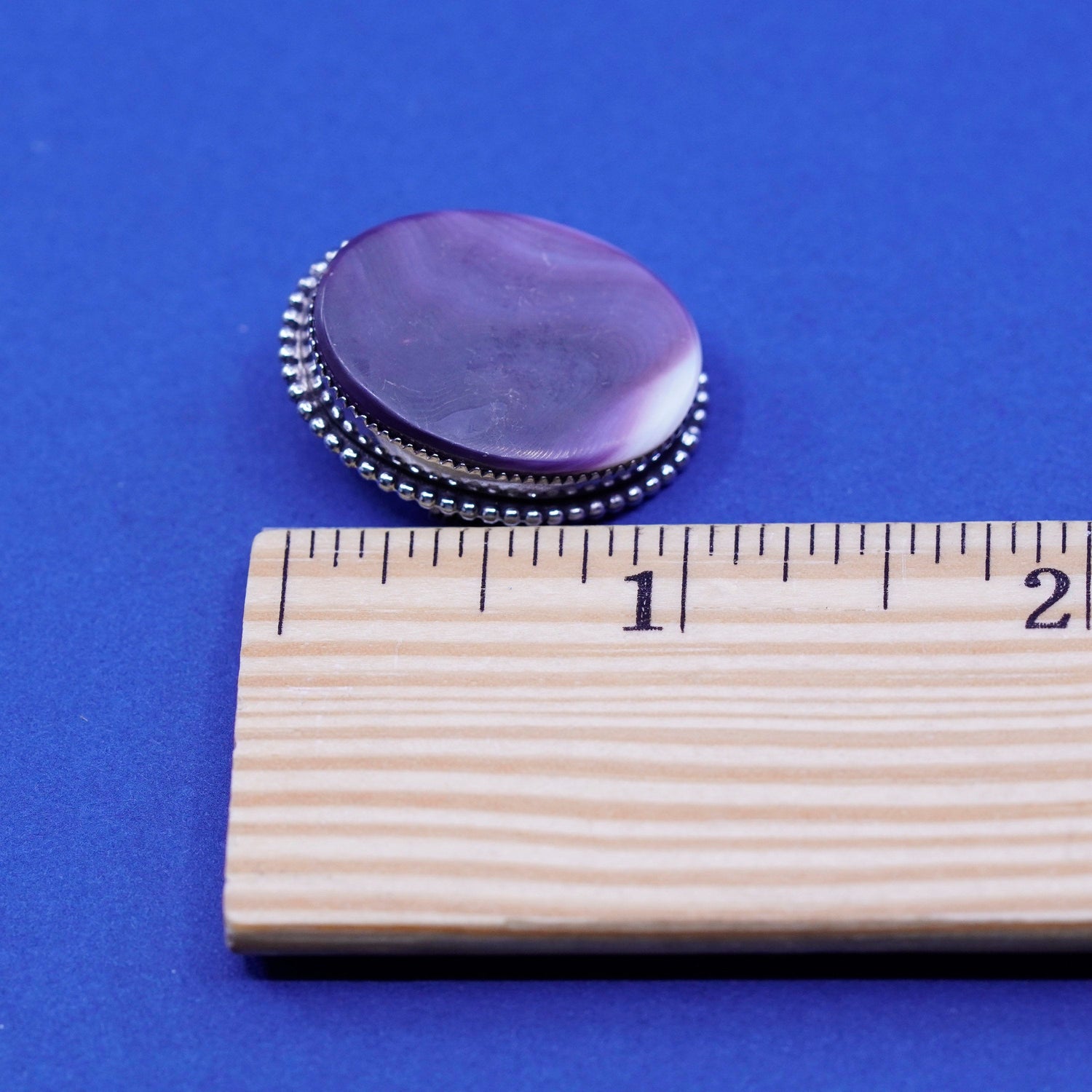 Vintage Sterling 925 silver handmade pendant brooch with purple mother of pearl and beads around, stamped Sterling