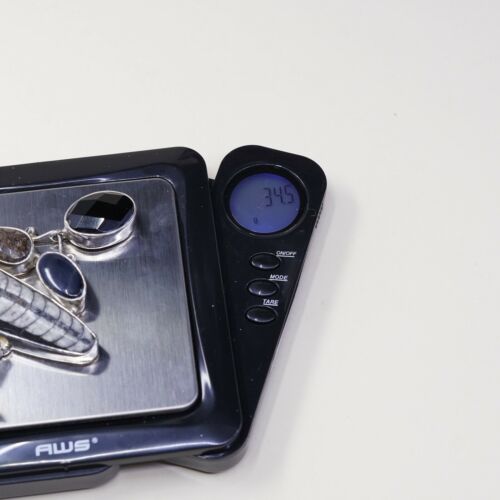 Vintage Sterling 925 Silver Huge Orthoceras Fossil Talisman Pendant 400 Million Yrs, with labradorite and obsidian detail, stamped 925