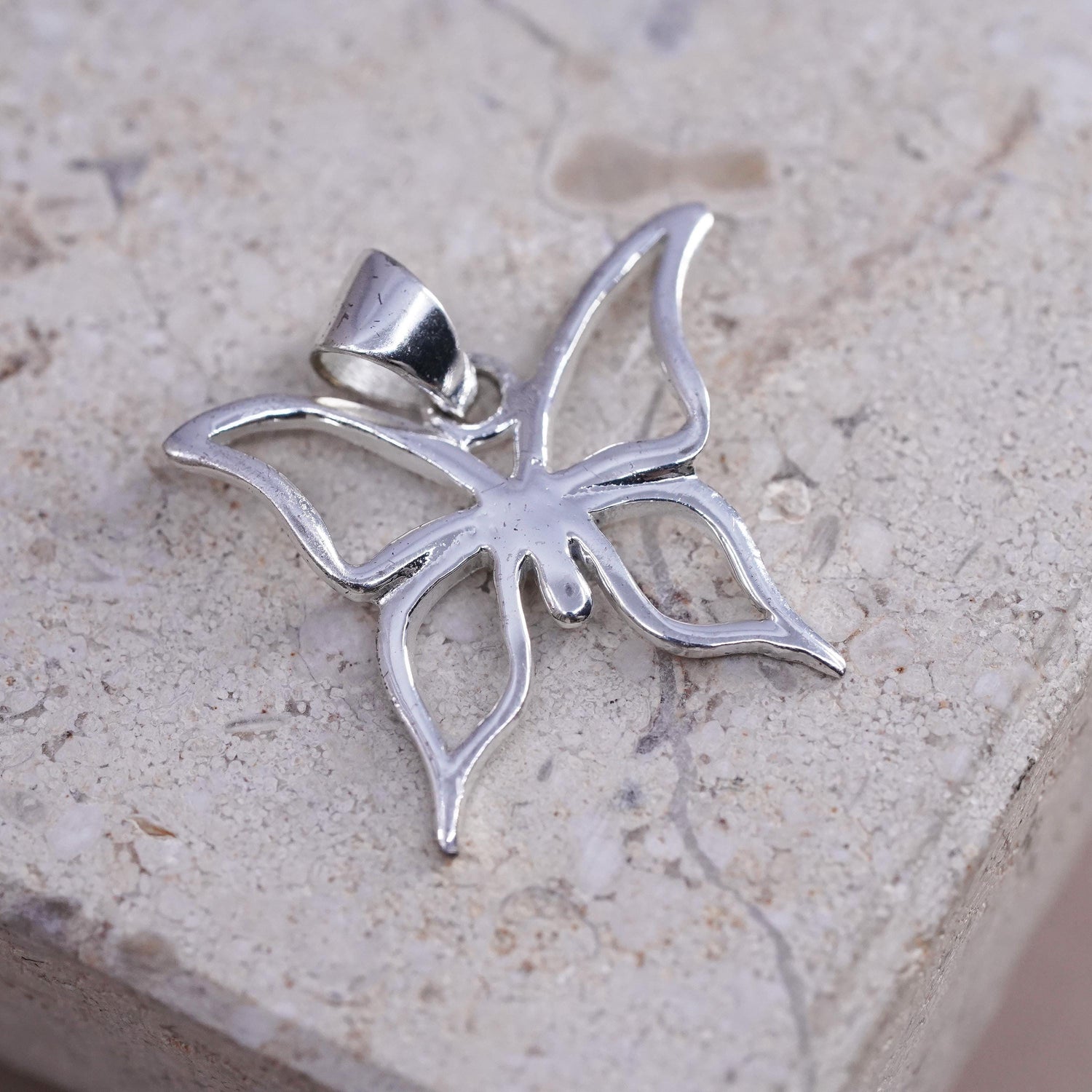 Sterling silver handmade pendant, solid 925 silver butterfly charm, stamped 925