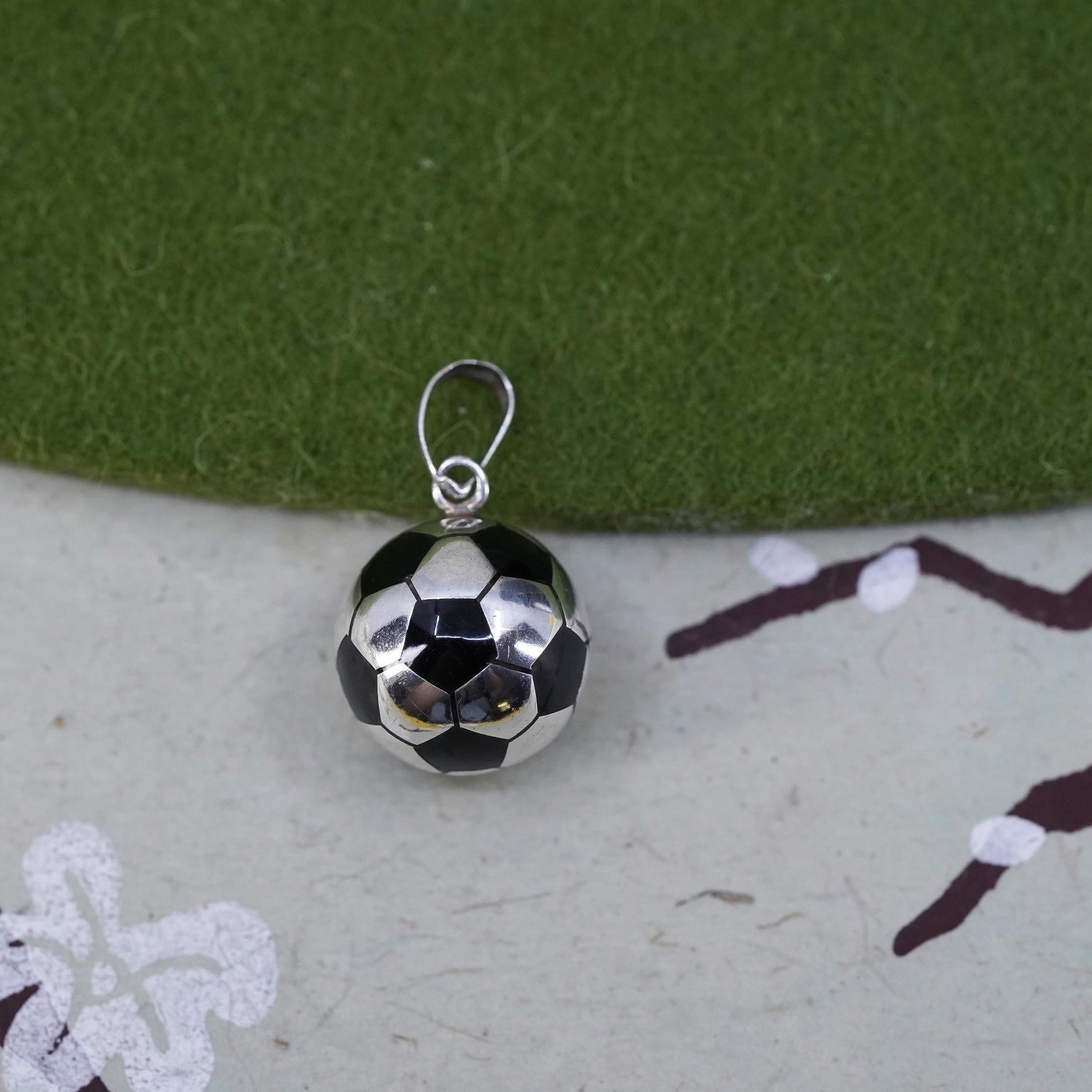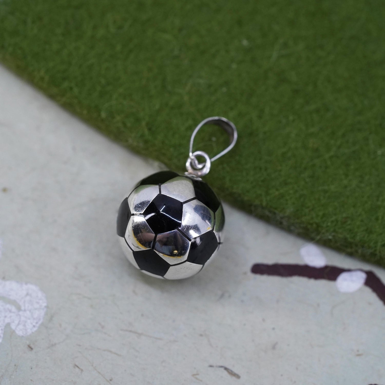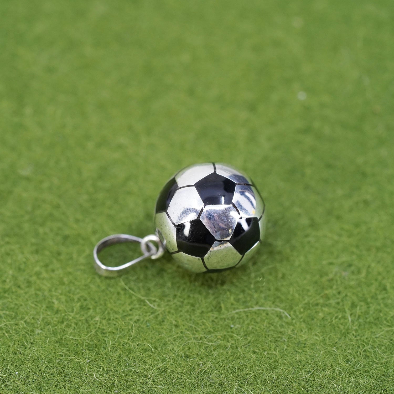 sterling silver pendant, 925 Mexico silver 3D football soccer charm enamel