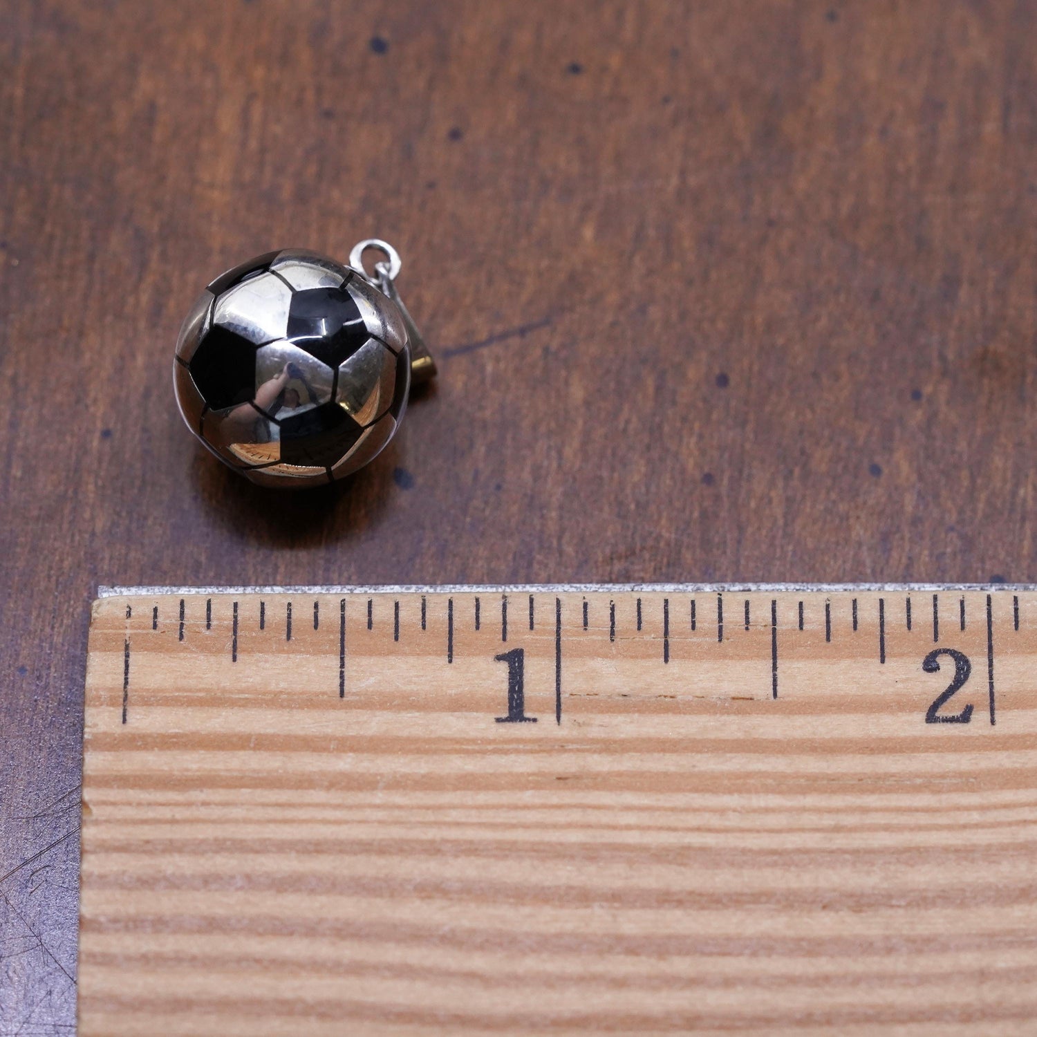 Vintage sterling silver pendant, 925 Mexico silver 3D football soccer charm with enamel, stamped 925