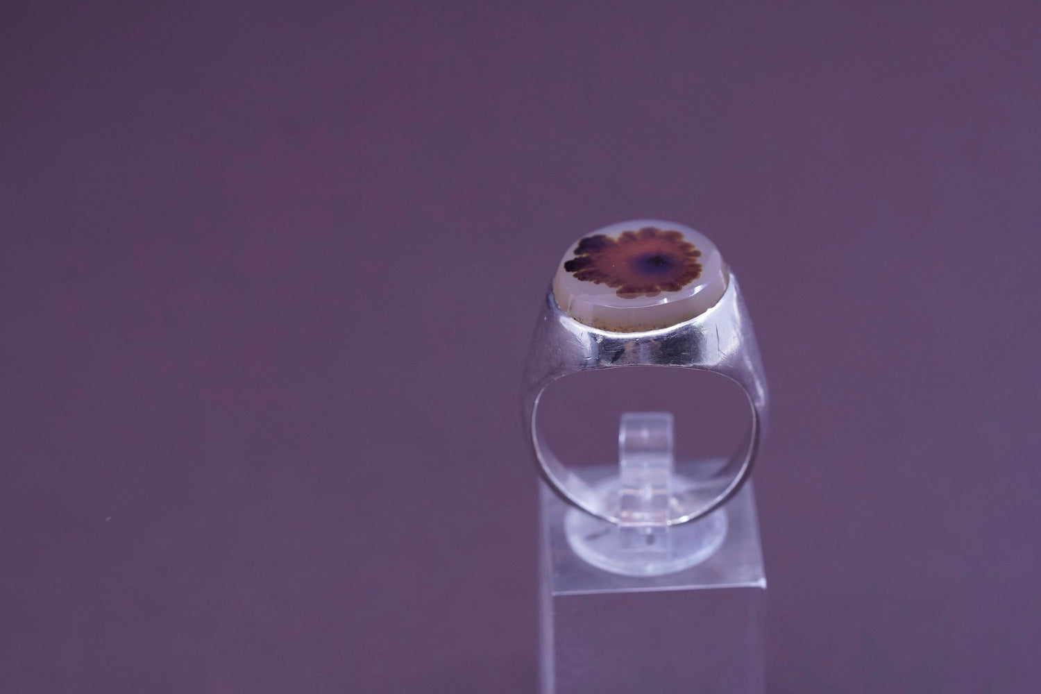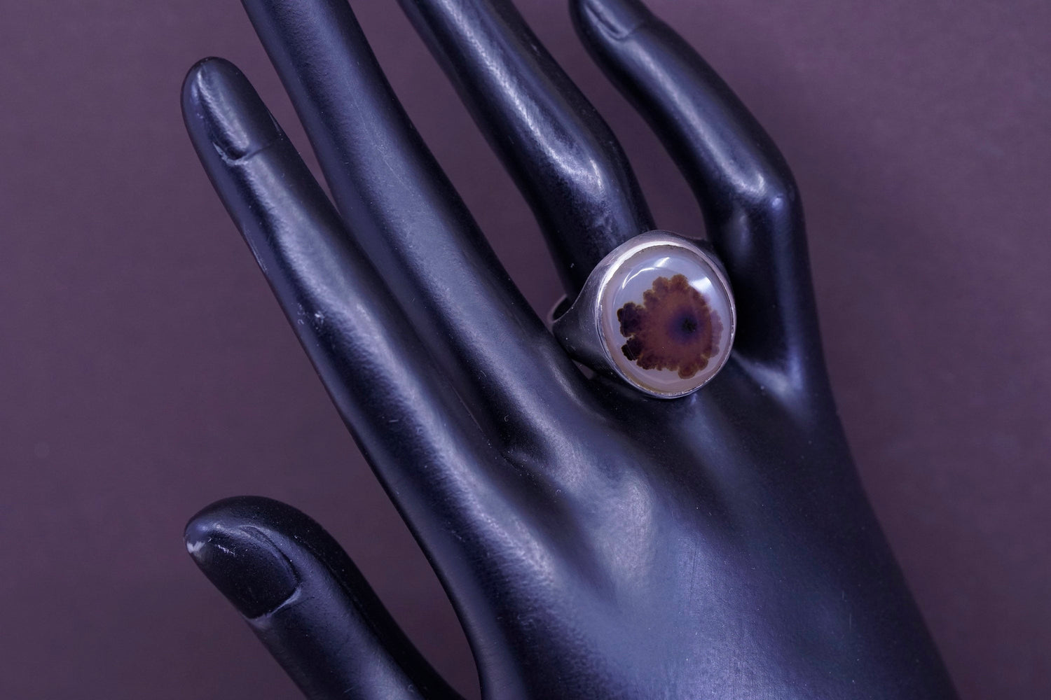 sz 11, vtg Sterling 925 silver handmade ring with wood pattern dendritic agate