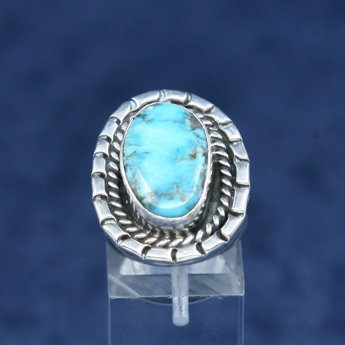 Size 6.25, vintage Sterling silver handmade ring, Native American, southwestern, 925 silver with morenci turquoise and cable around, stamped mexico 925 hecho sterling