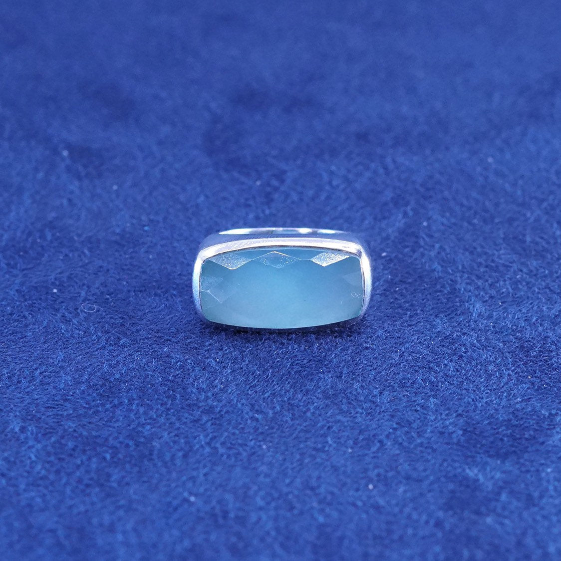 Size 6, designer S & Co. 925 Sterling Silver Square cushion cut Chalcedony Cocktail Ring, solid 925 Silver statement band, stamped 925 GE S&co