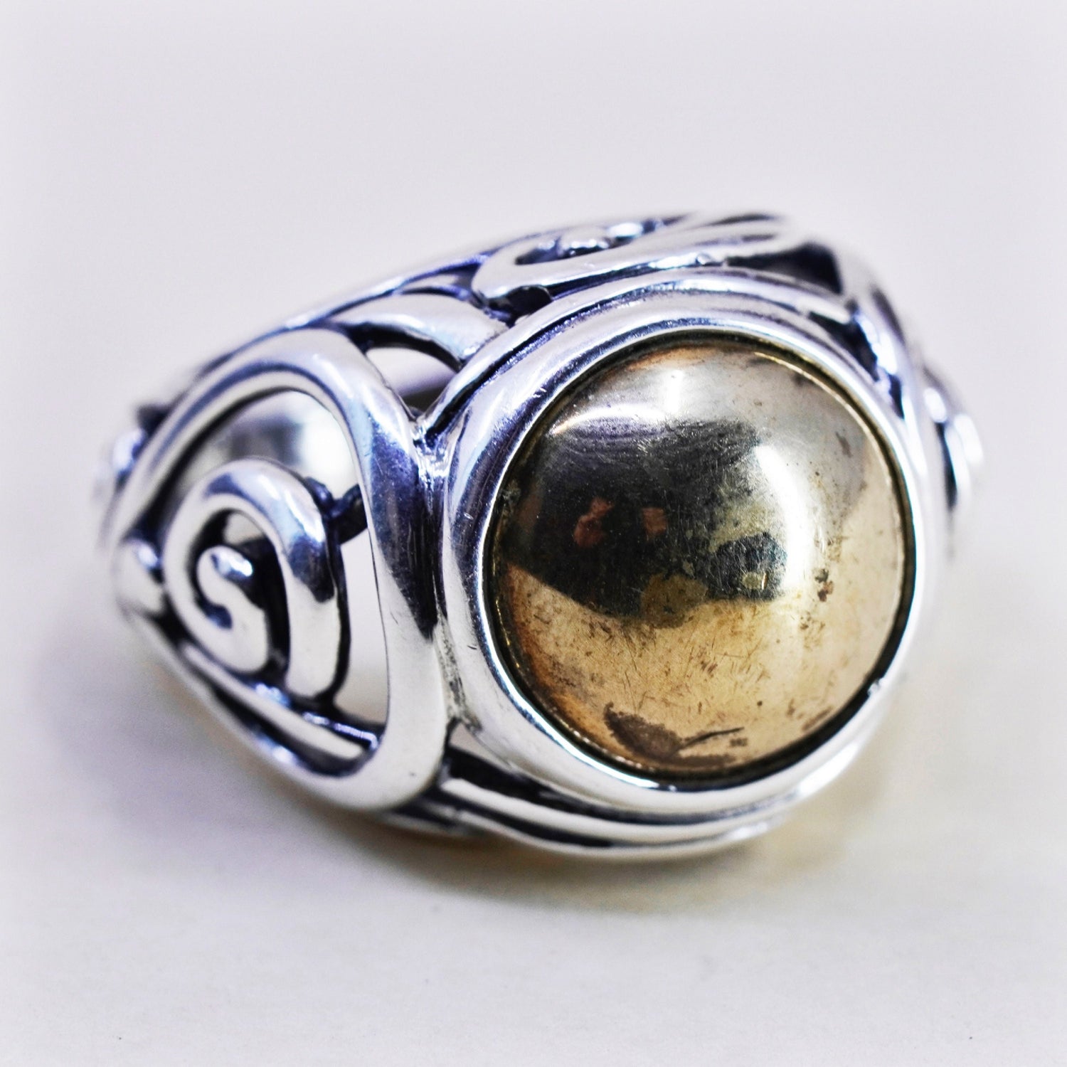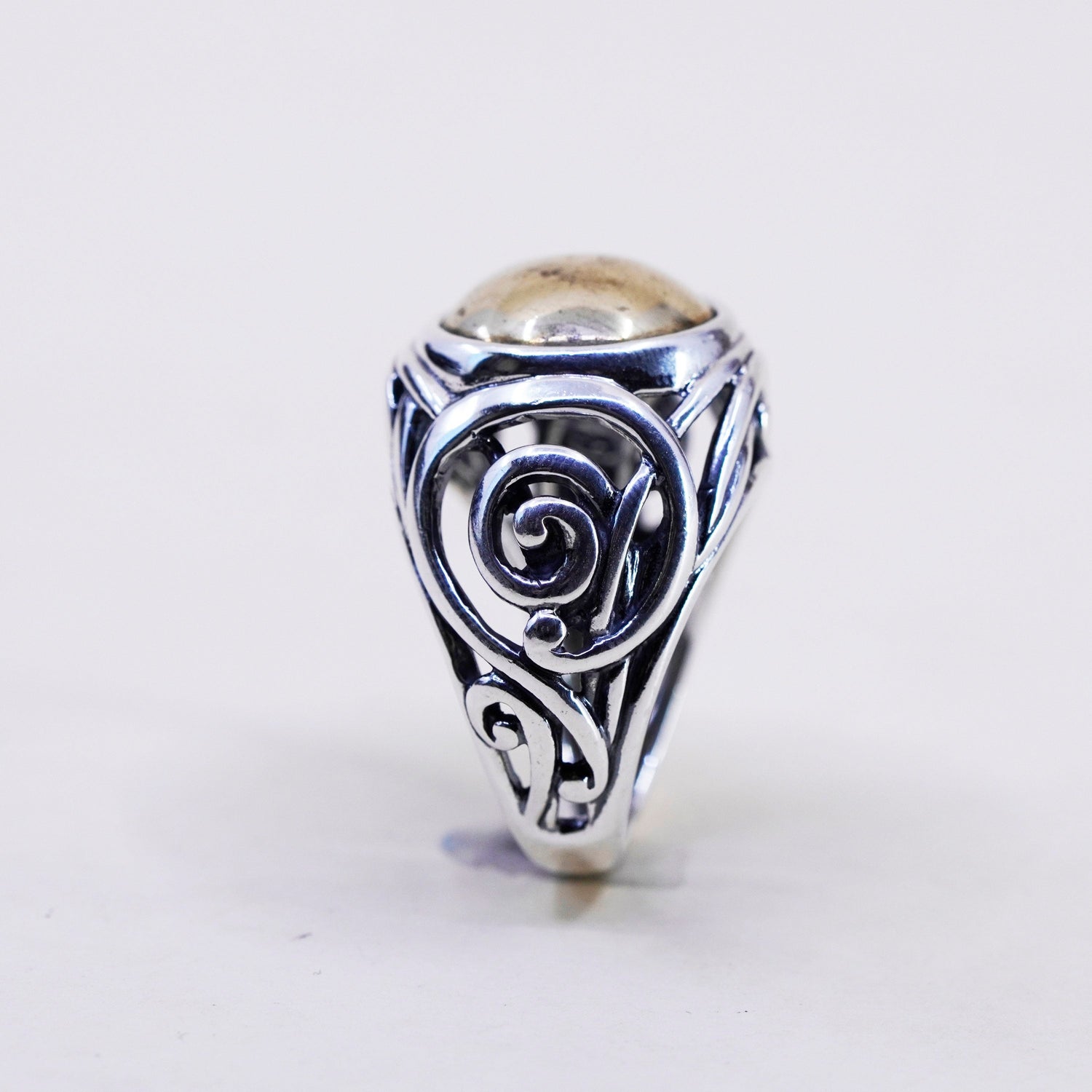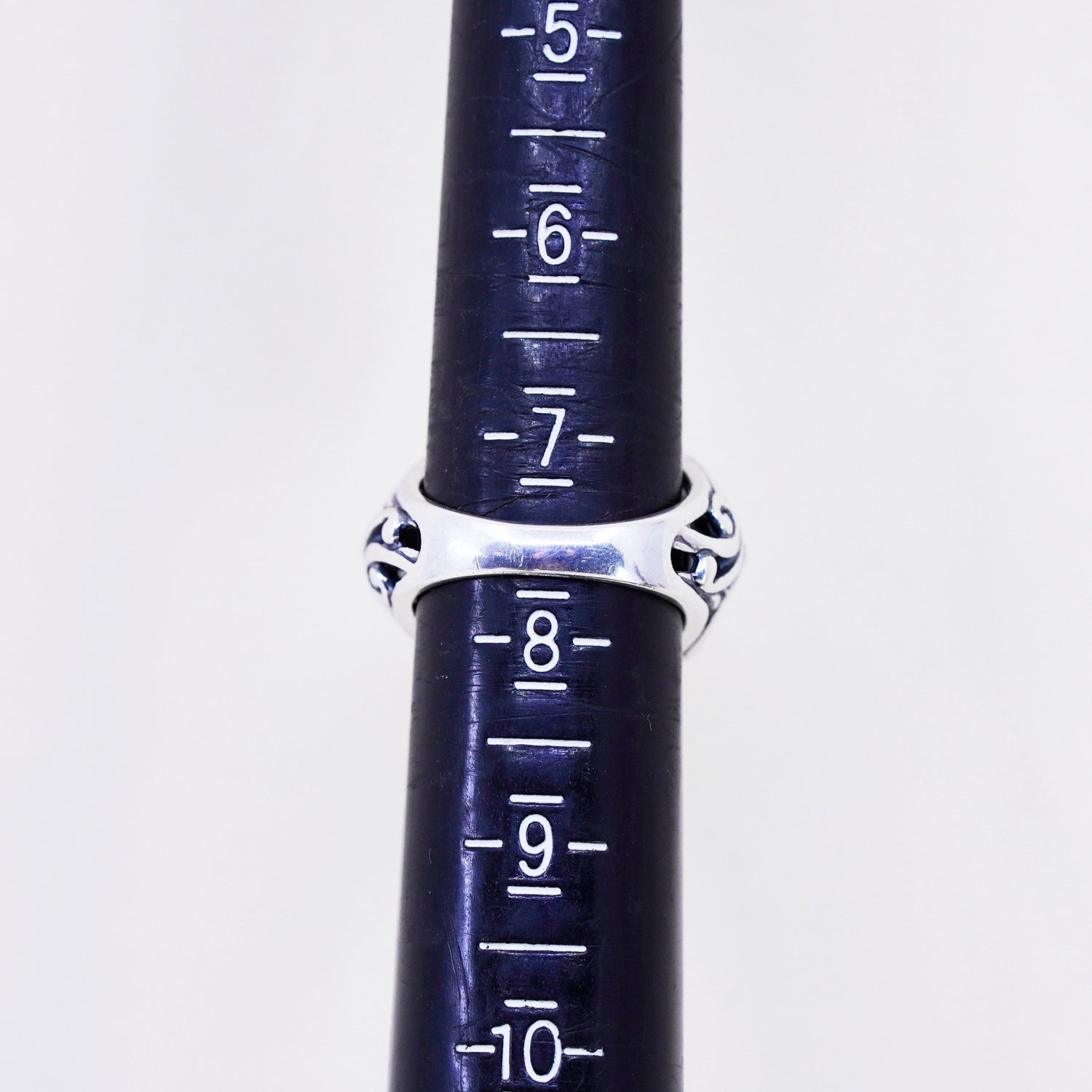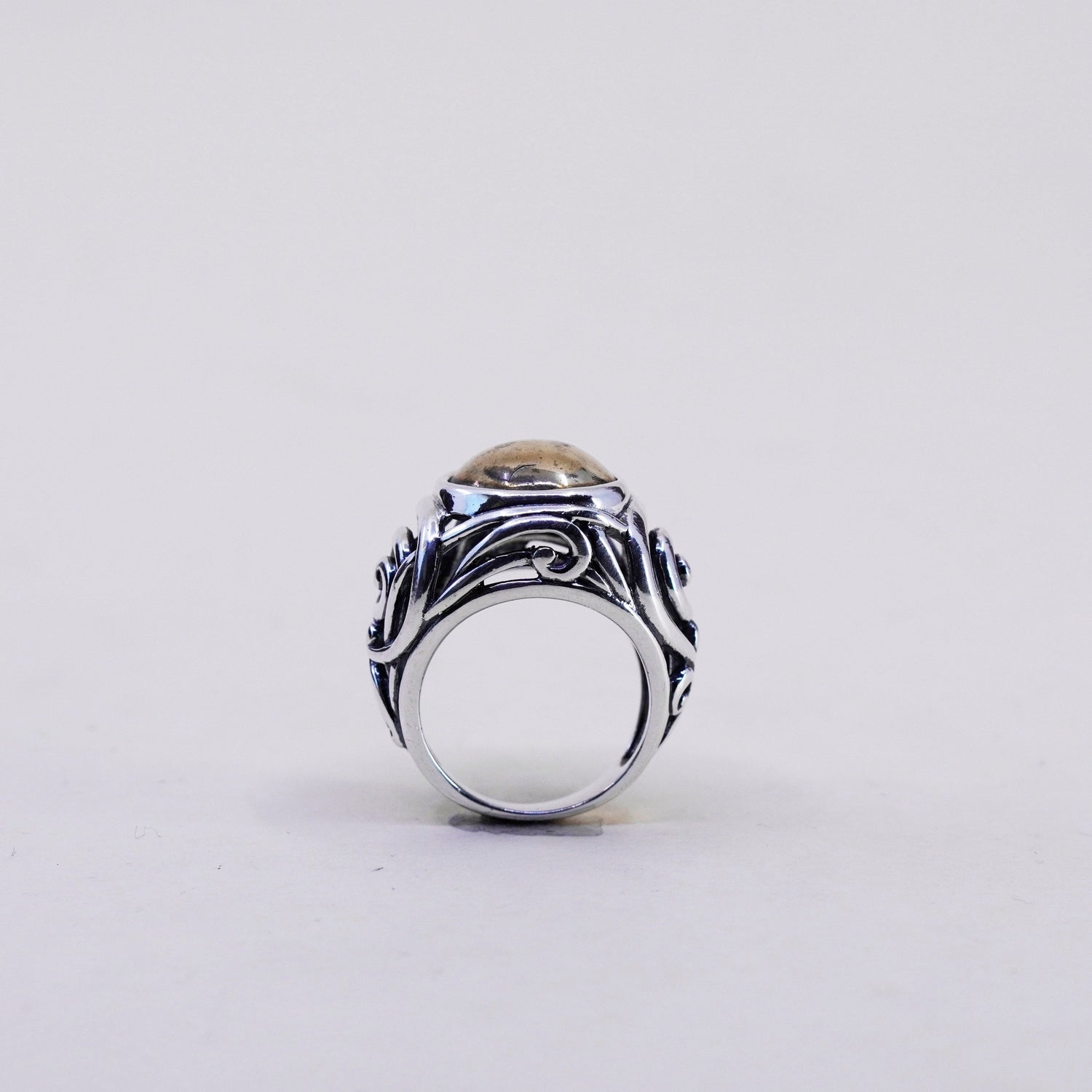 Size 7.5, Vintage Carolyn pollack two tone sterling 925 silver handmade scroll ring band, stamped 925