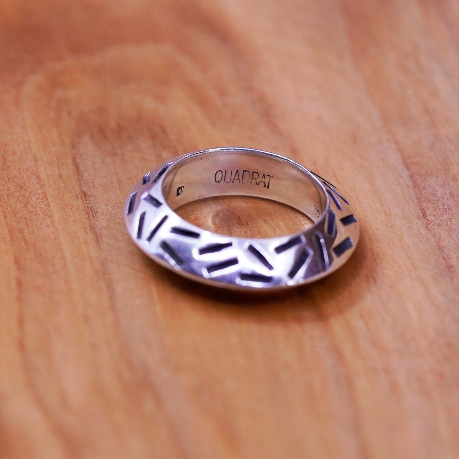 Size 7.5 vintage designer Quadrat Sterling silver handmade ring, textured 800 ribbed band, minimalist, modernist, stamped 800 Quadrat