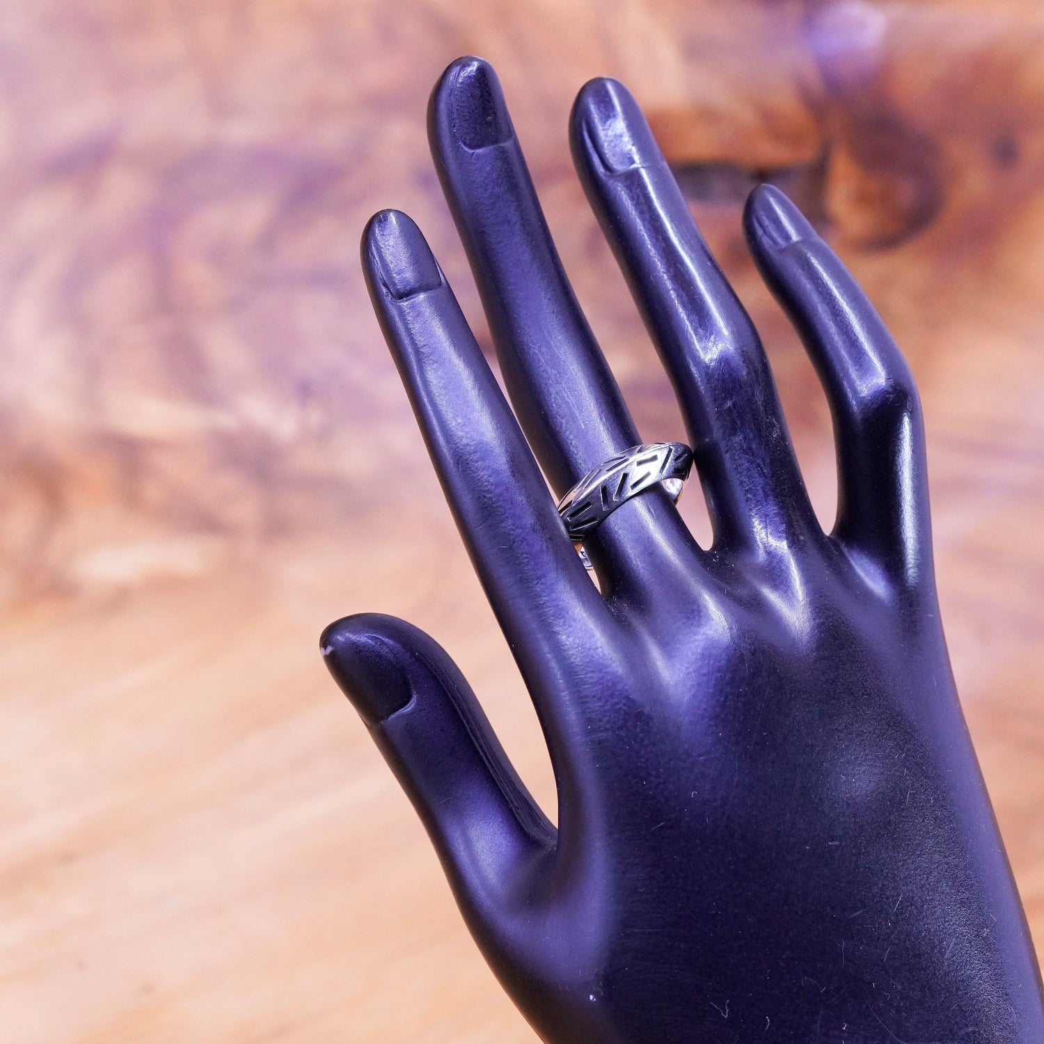 sz 7.5 vintage designer Quadrat Sterling silver ring, textured 800 ribbed band