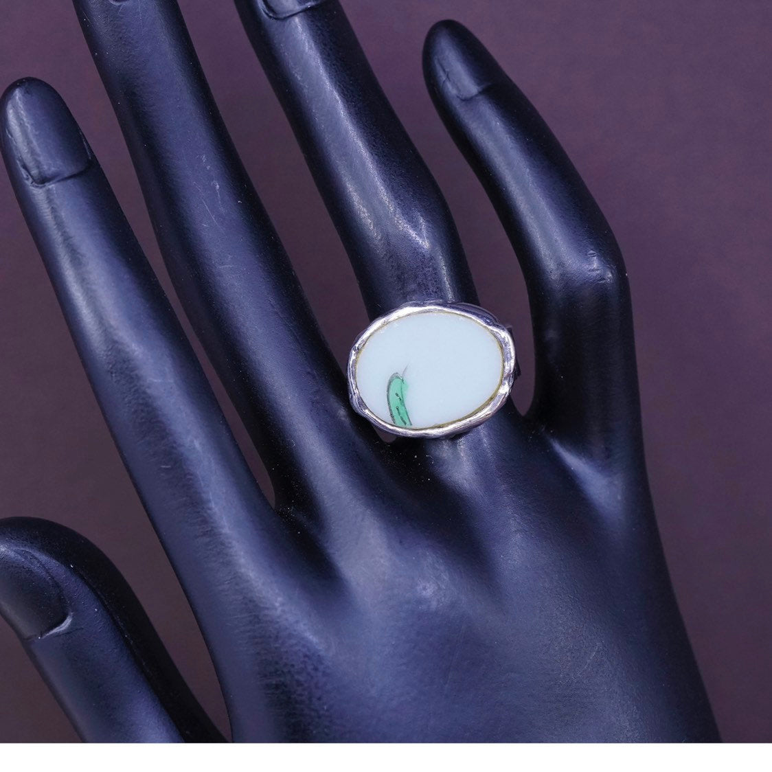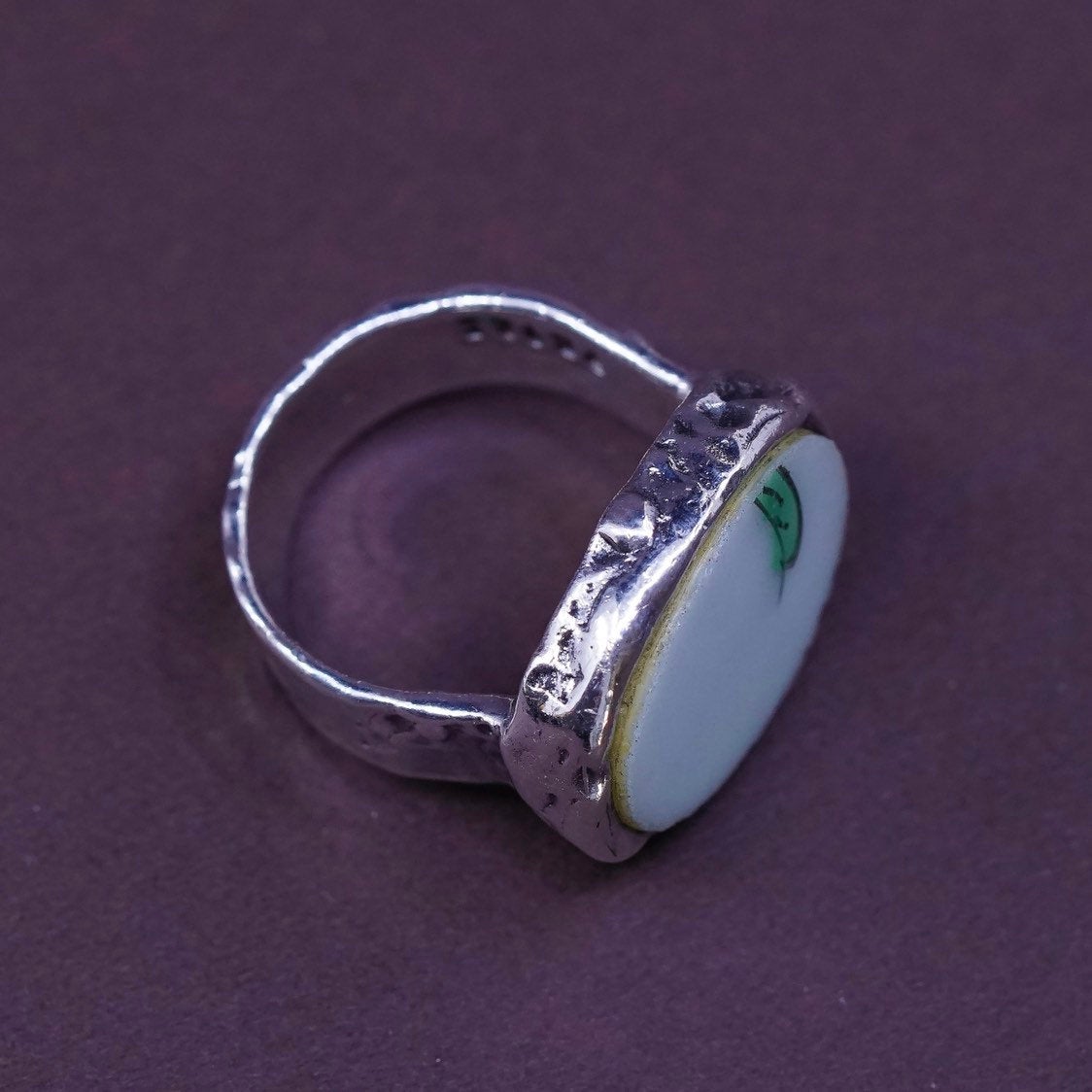 sz 7, PB Sterling silver handmade ring, Mexican 925 wide band w/ China pottery