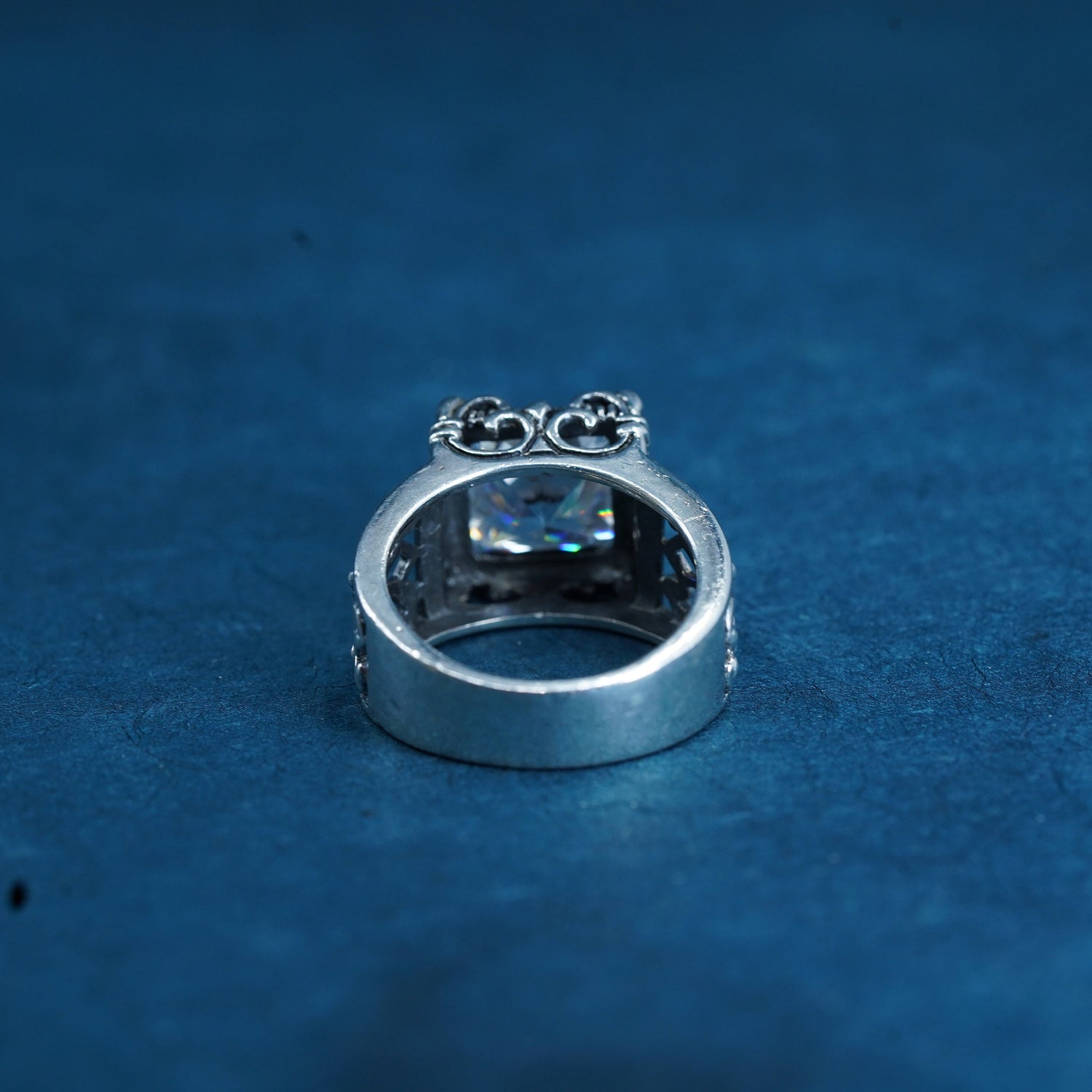Size 7, vintage Silpada Sterling 925 Silver Uptown Cubic Zirconia Filigree Ring R0981 CZ, stamped 925