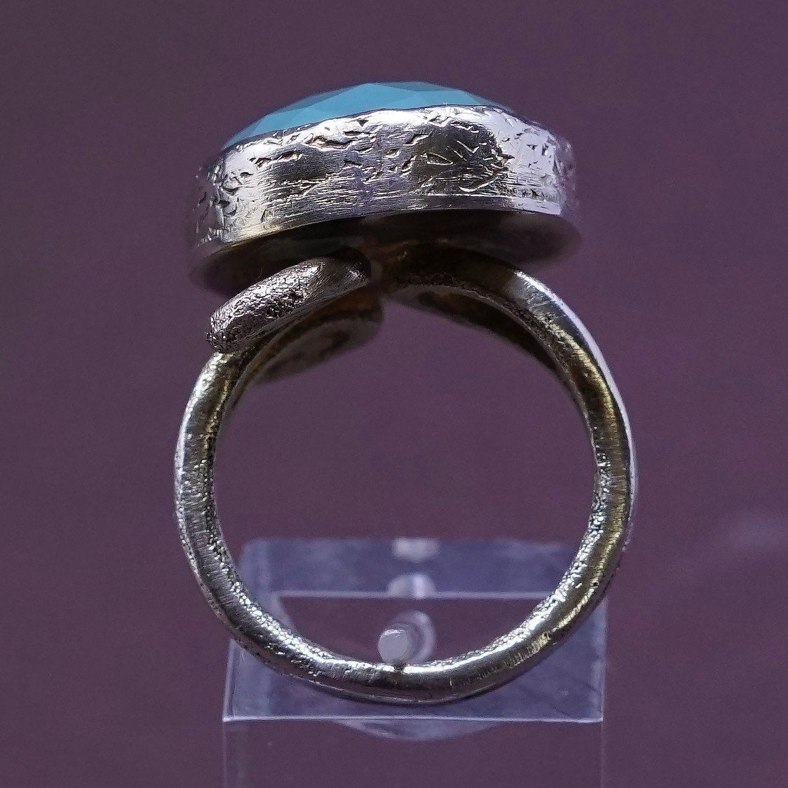 sz 7, vtg handmade statement Sterling Silver statement ring w/ Chalcedony Ring