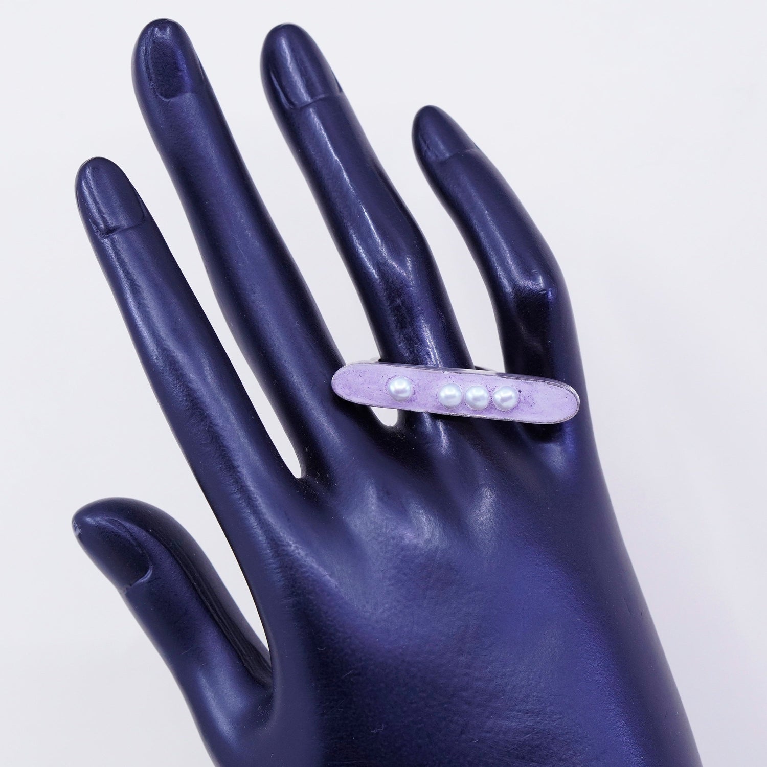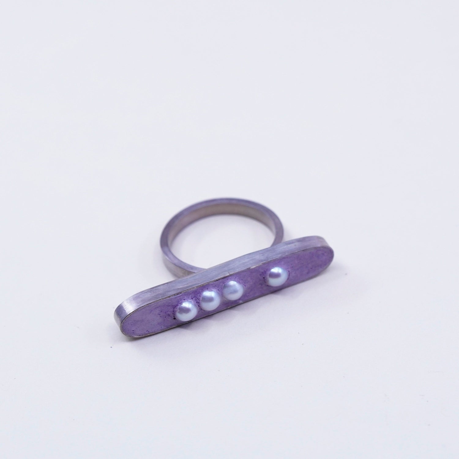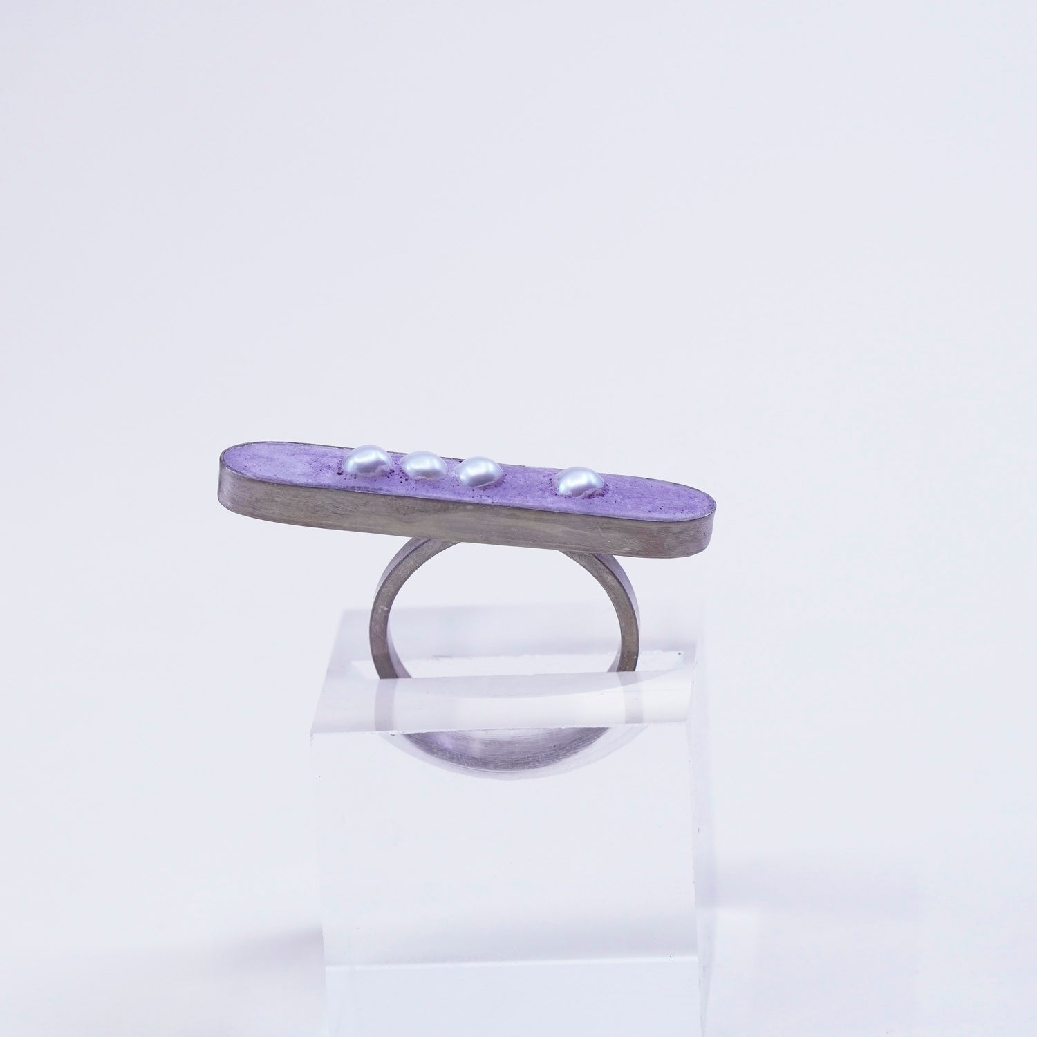 sz 8.5, SCAD Jeweler Stina Wen sterling 925 silver ring purple concrete N pearl