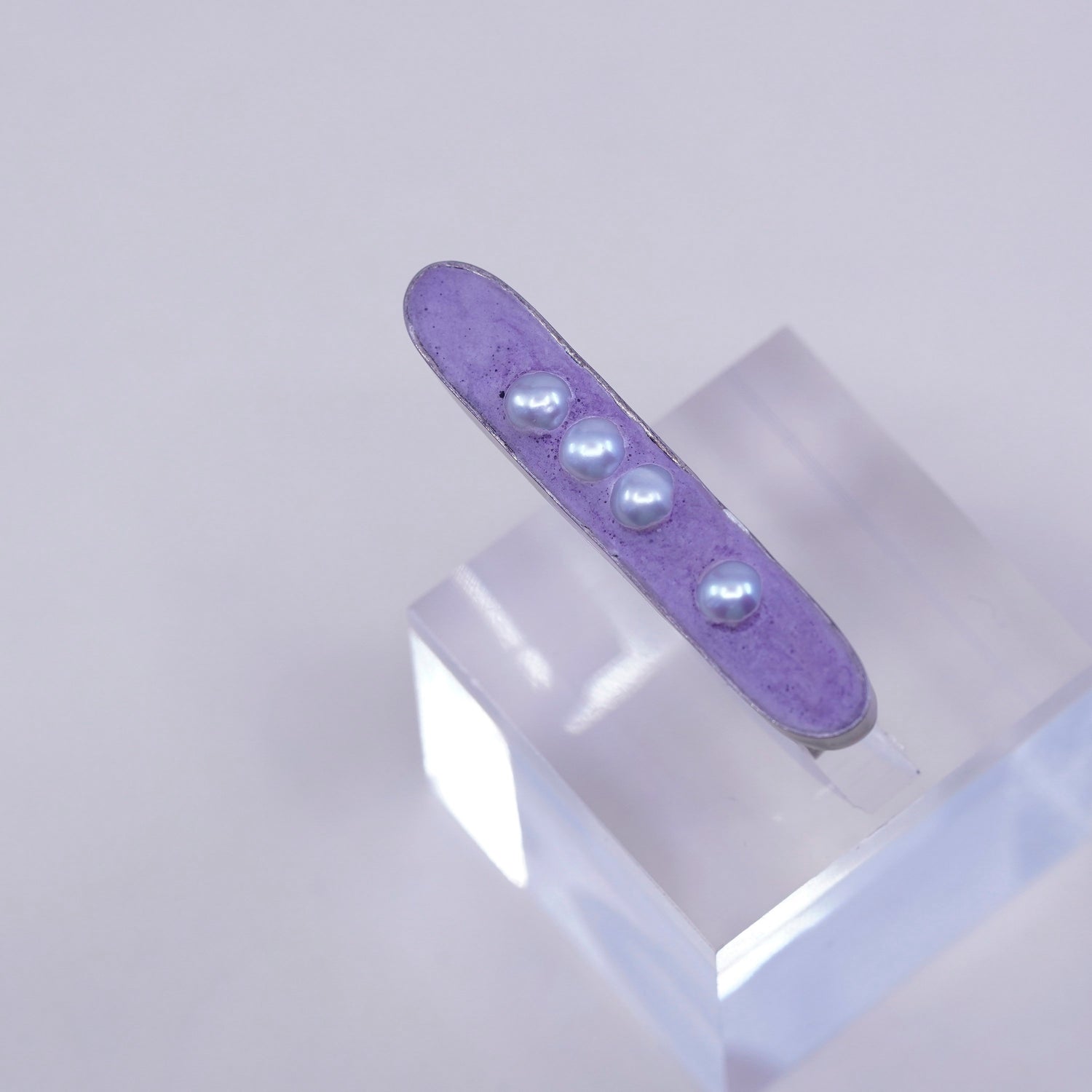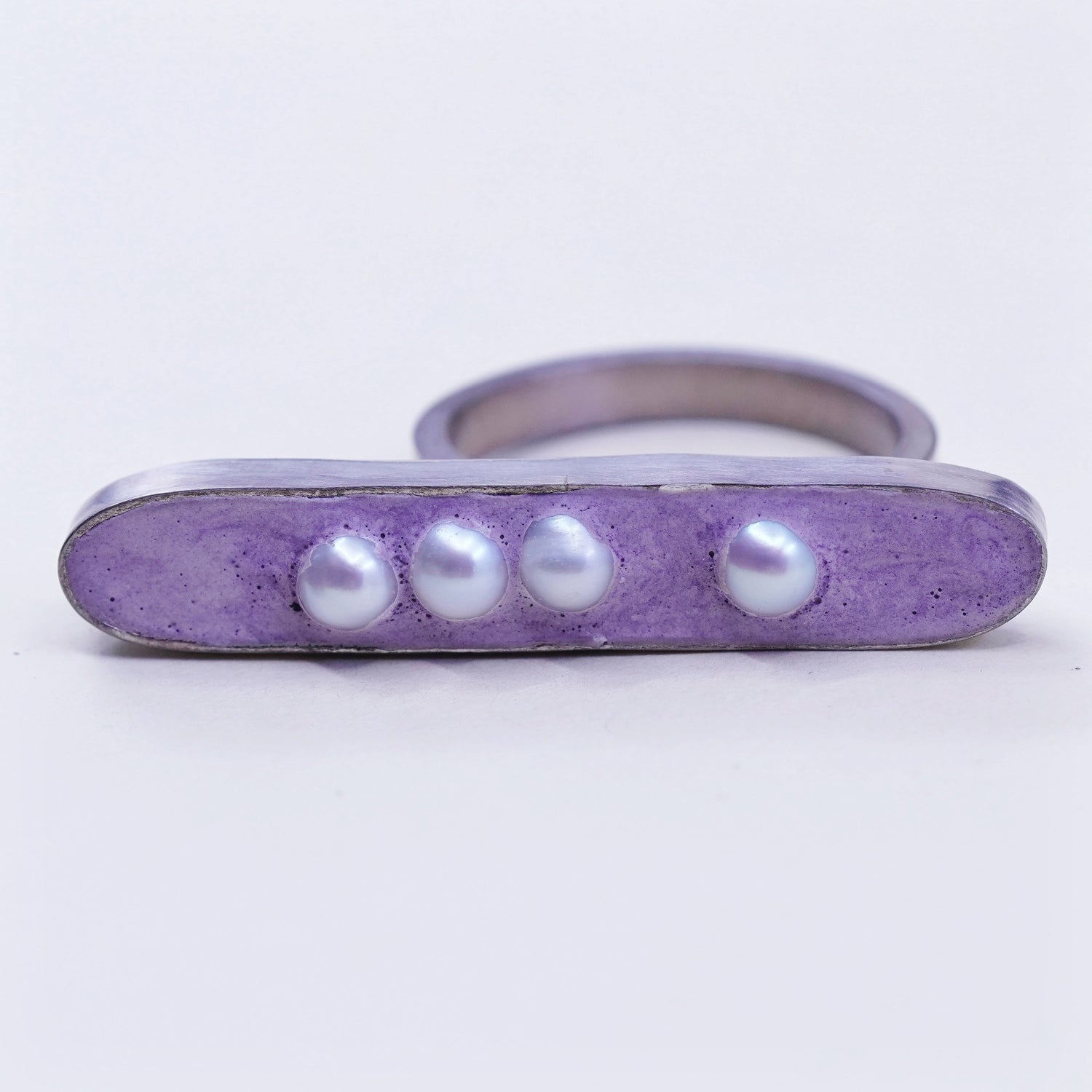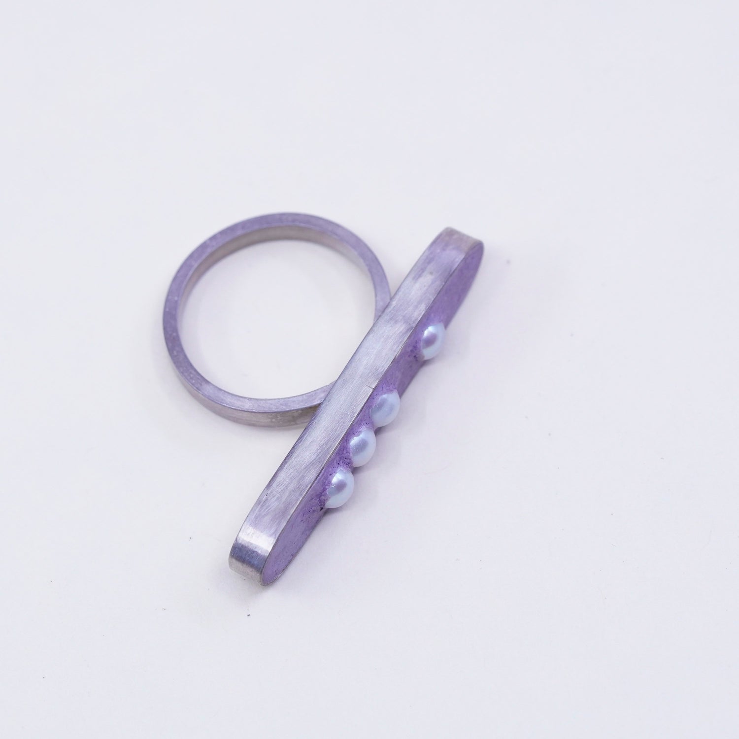 sz 8.5, SCAD Jeweler Stina Wen sterling 925 silver ring purple concrete N pearl