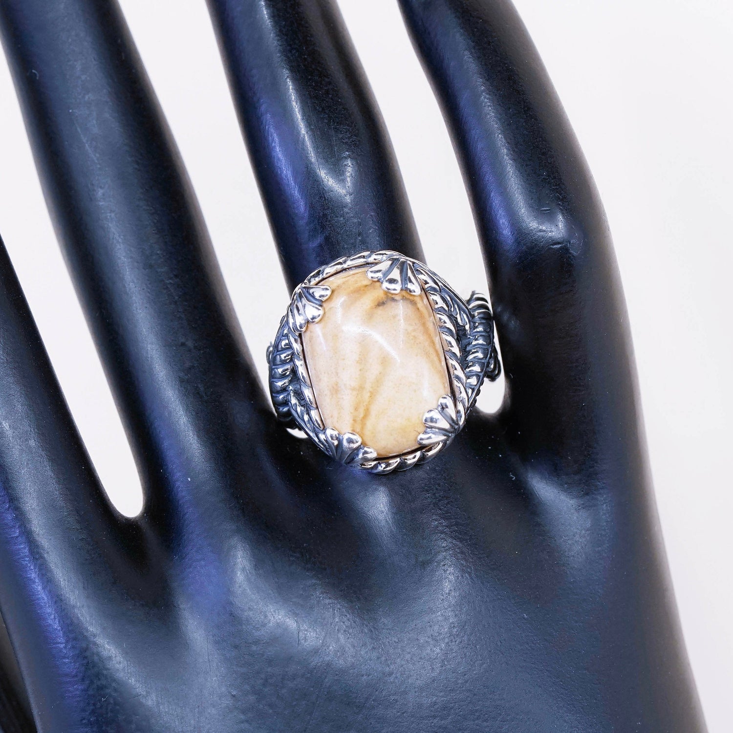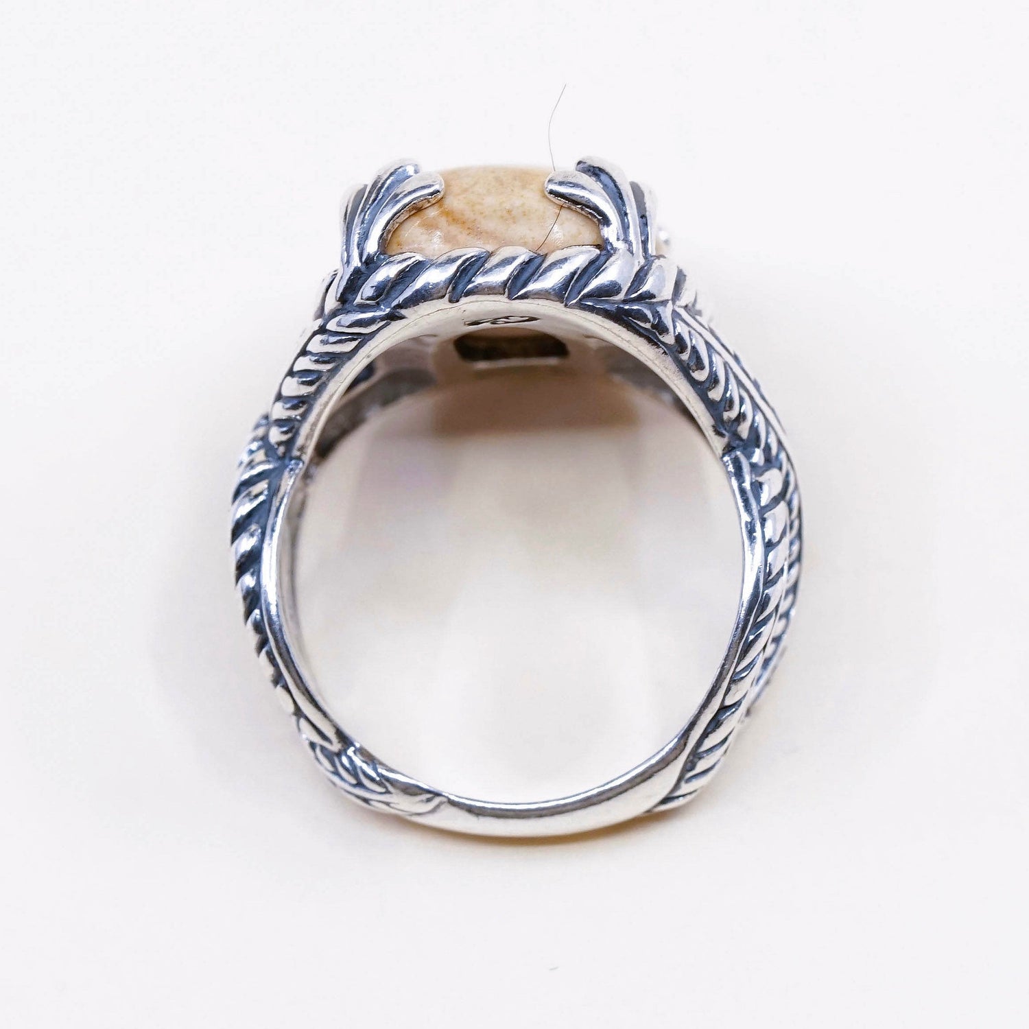 sz 8.5, vtg relios carolyn pollack sterling 925 silver ring w/ agate N cable