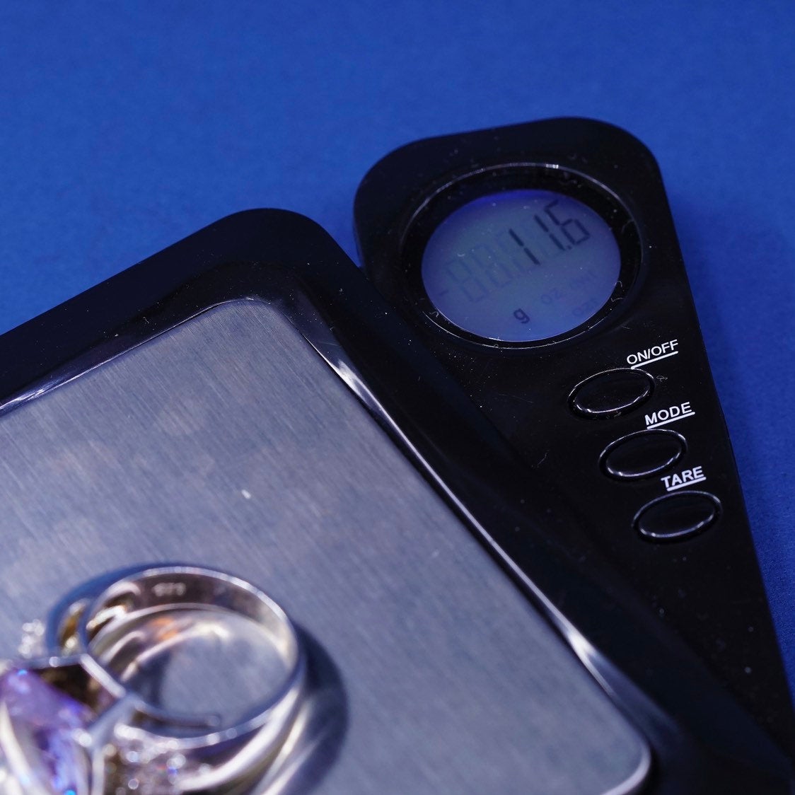 sz 8.75, vtg Sterling silver handmade ring, 925 w/ amethyst ring