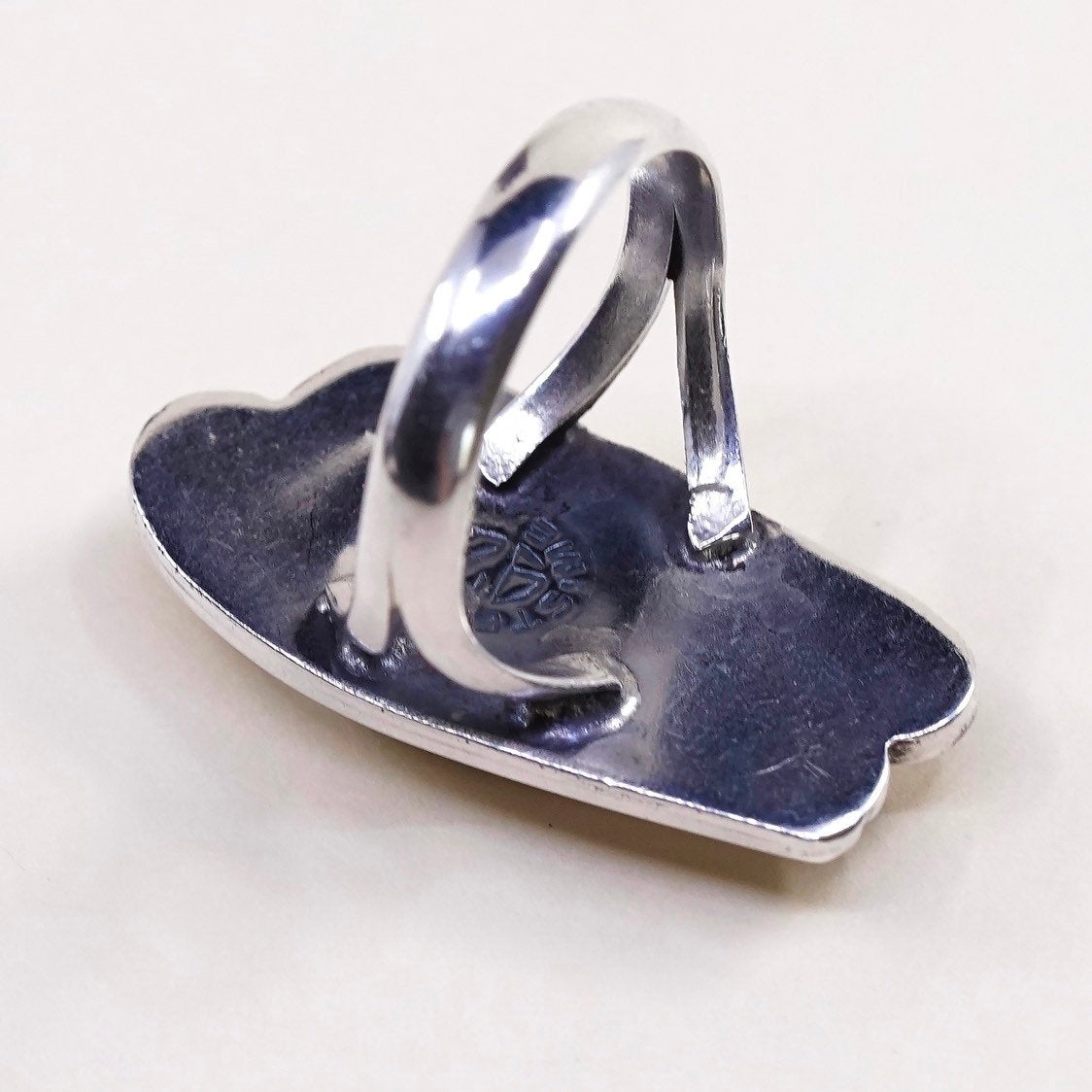 Size 8.75, Vintage sterling silver handmade ring, southwestern 925 silver ring with damale spiderwebbed turquoise stone, stamped 925