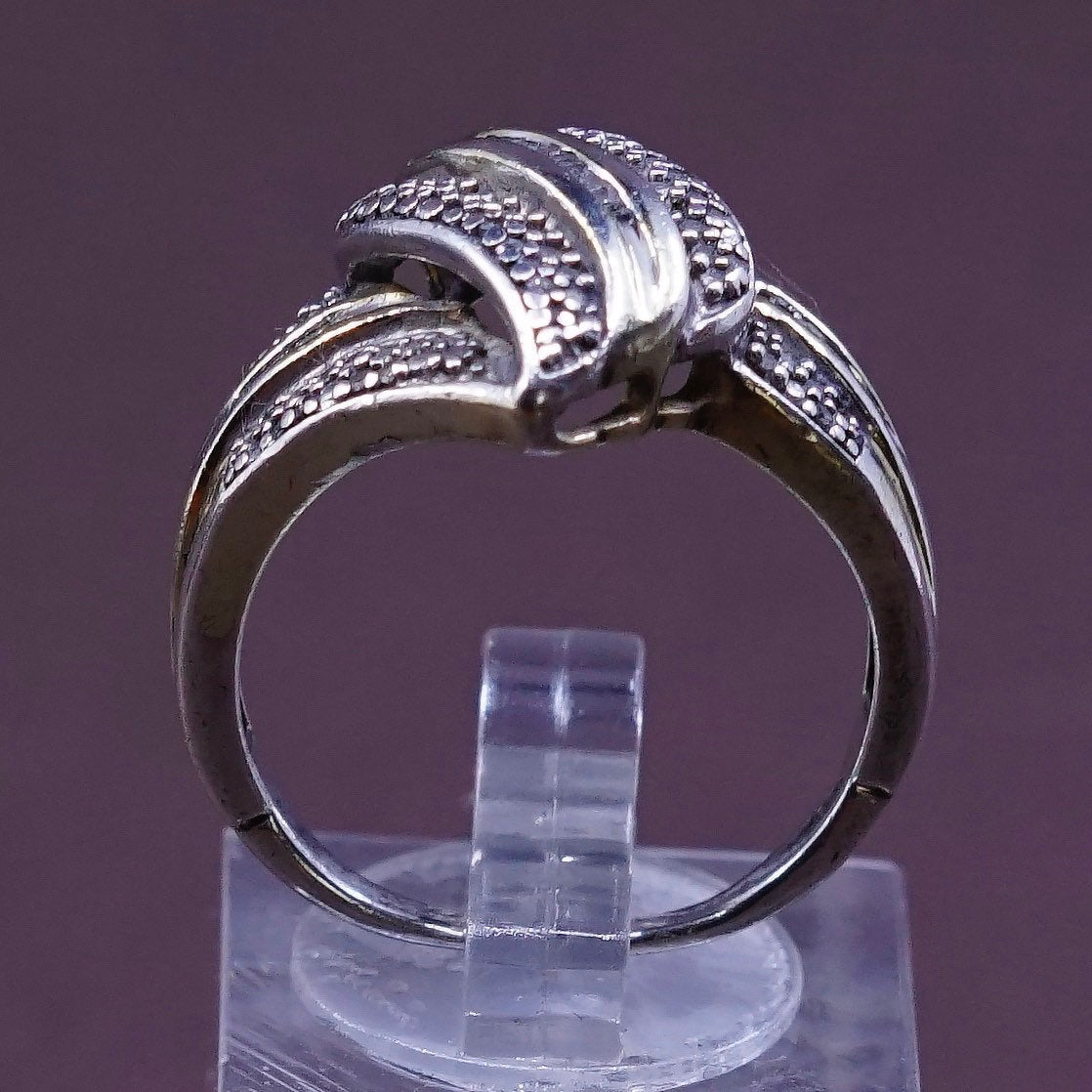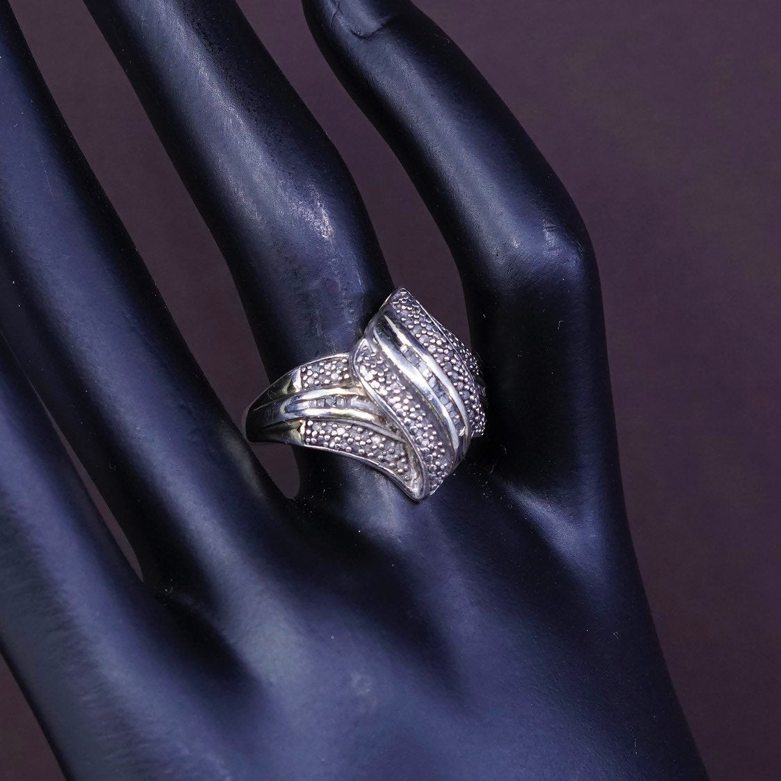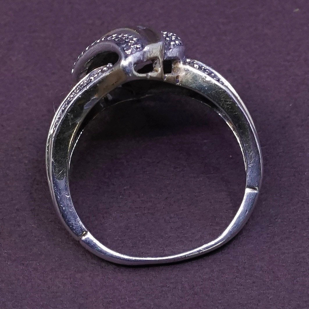 Size 8, vintage Sterling silver cocktail ring, solid 925 silver with genuine diamond details, stamped 925, signed hard to read