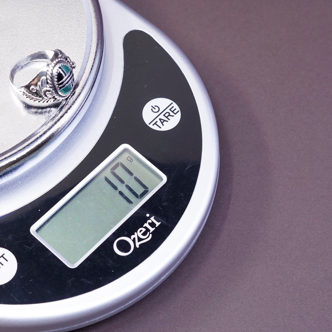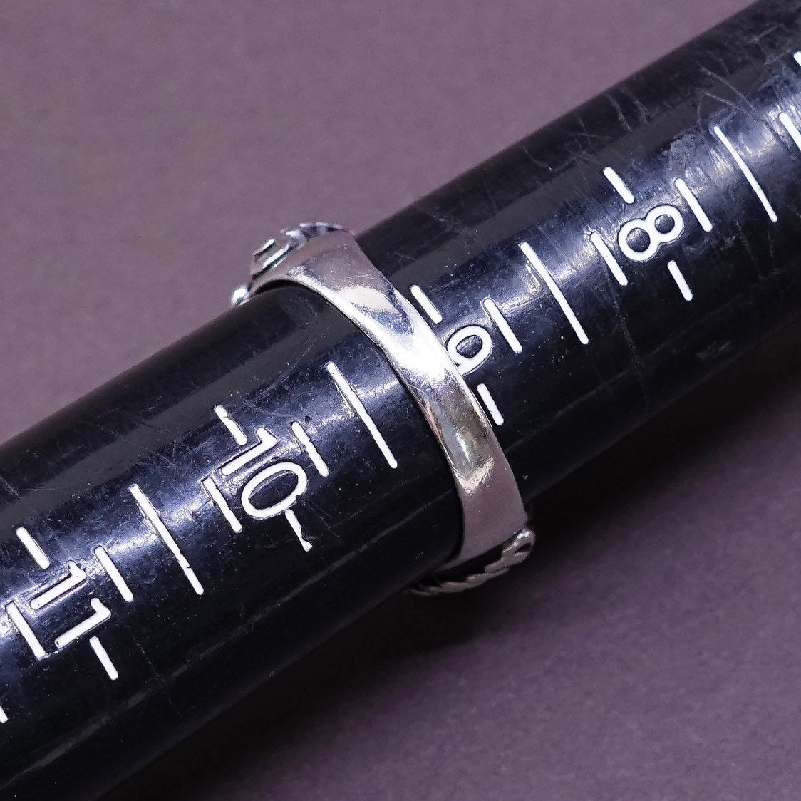 Size 9, vintage sterling silver handmade ring, solid 925 silver with obsidian and malachite details, stamped sterling, Native American