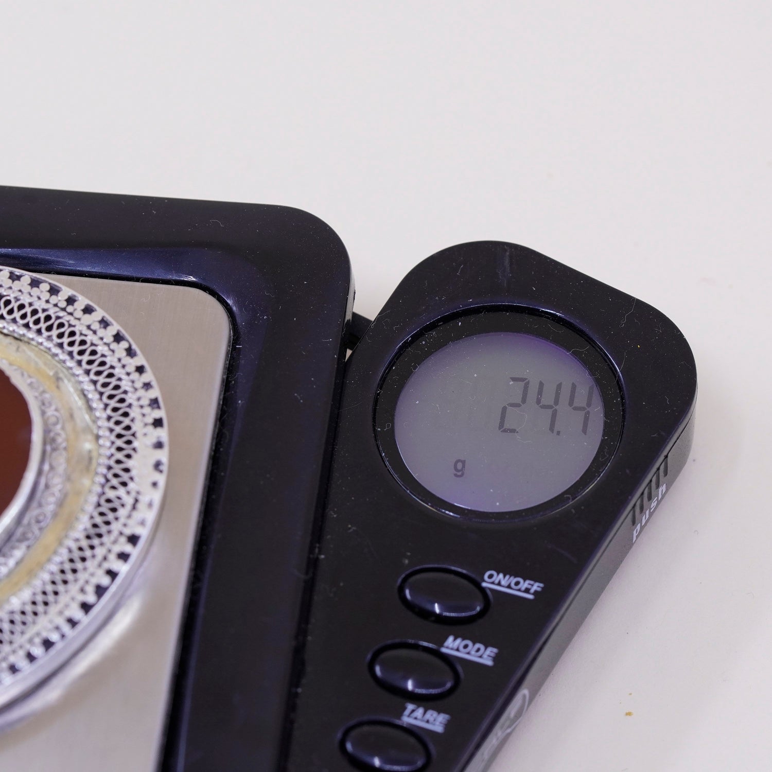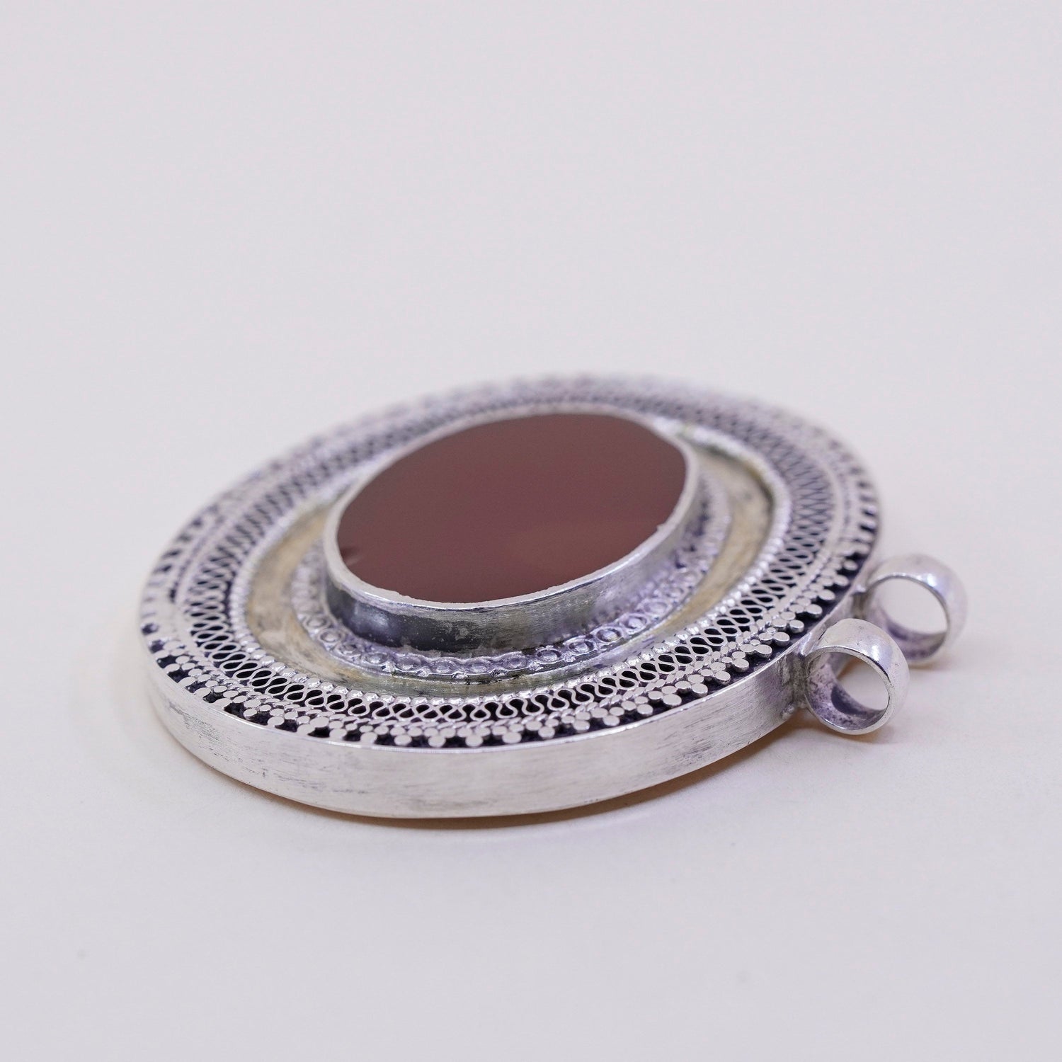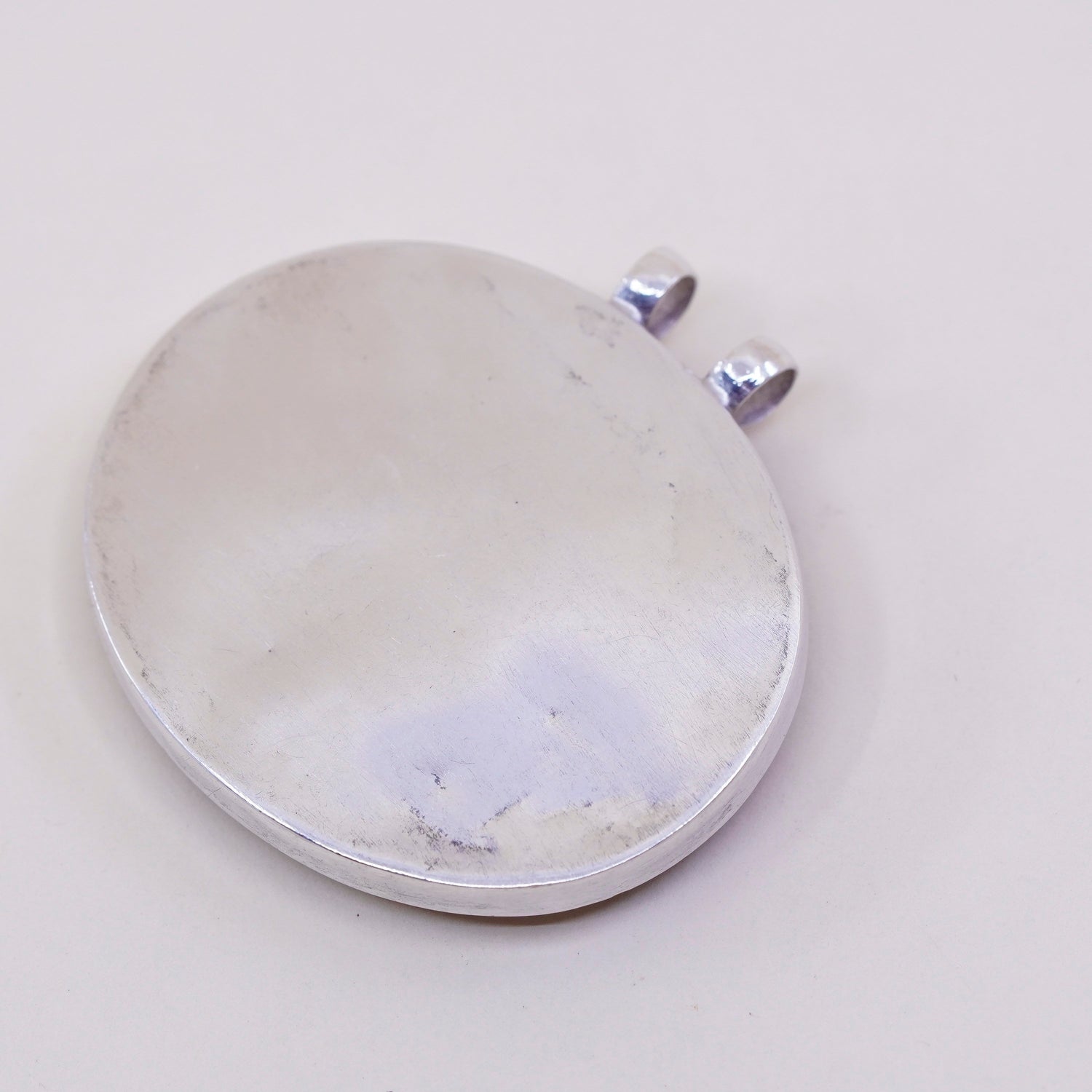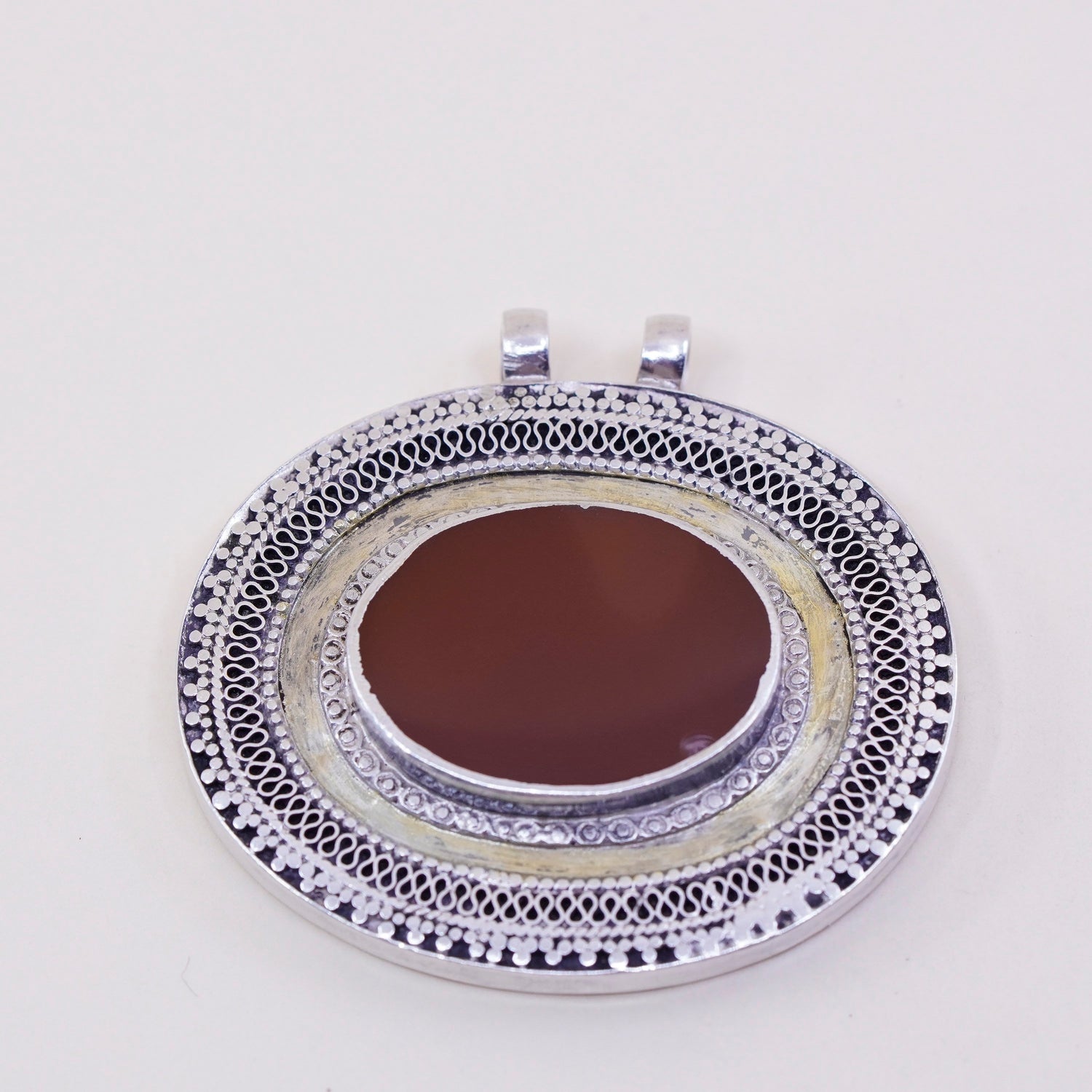 Vintage two tone sterling silver handmade pendant, huge 925 textured oval with carnelian around, silver tested