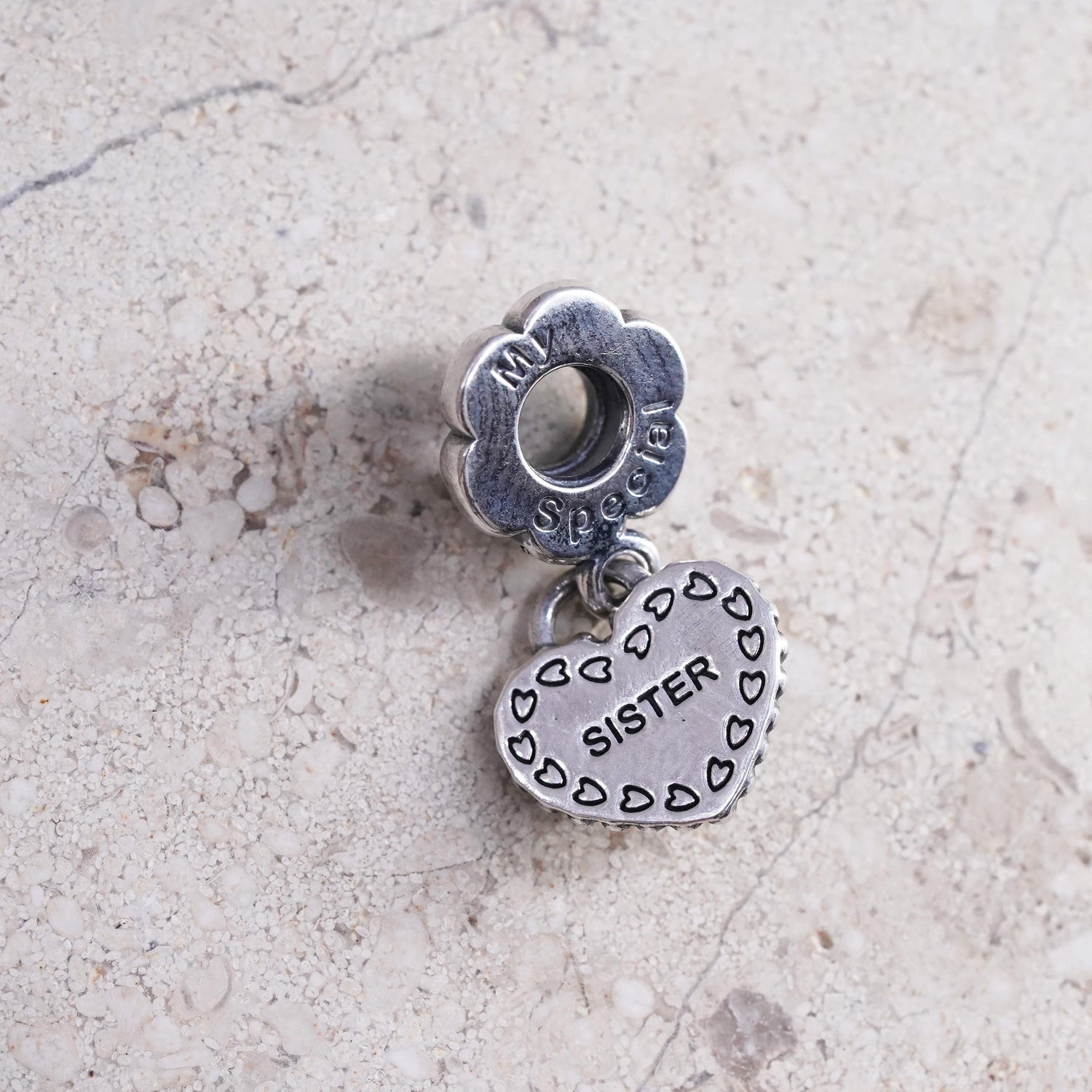 Vintage ALE sterling silver pendant, 925 heart charm embossed my special sister