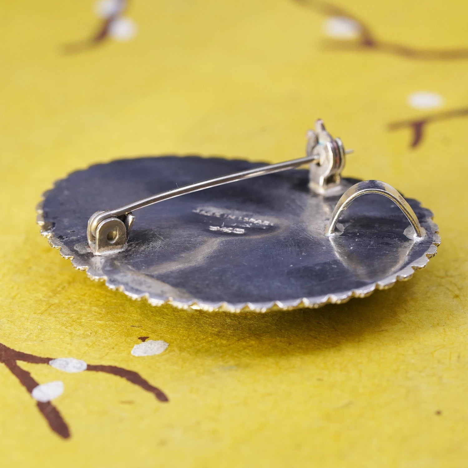 Vintage antique Israel handmade sterling 925 silver butterfly pendant brooch with turquoise, stamped sterling Israel