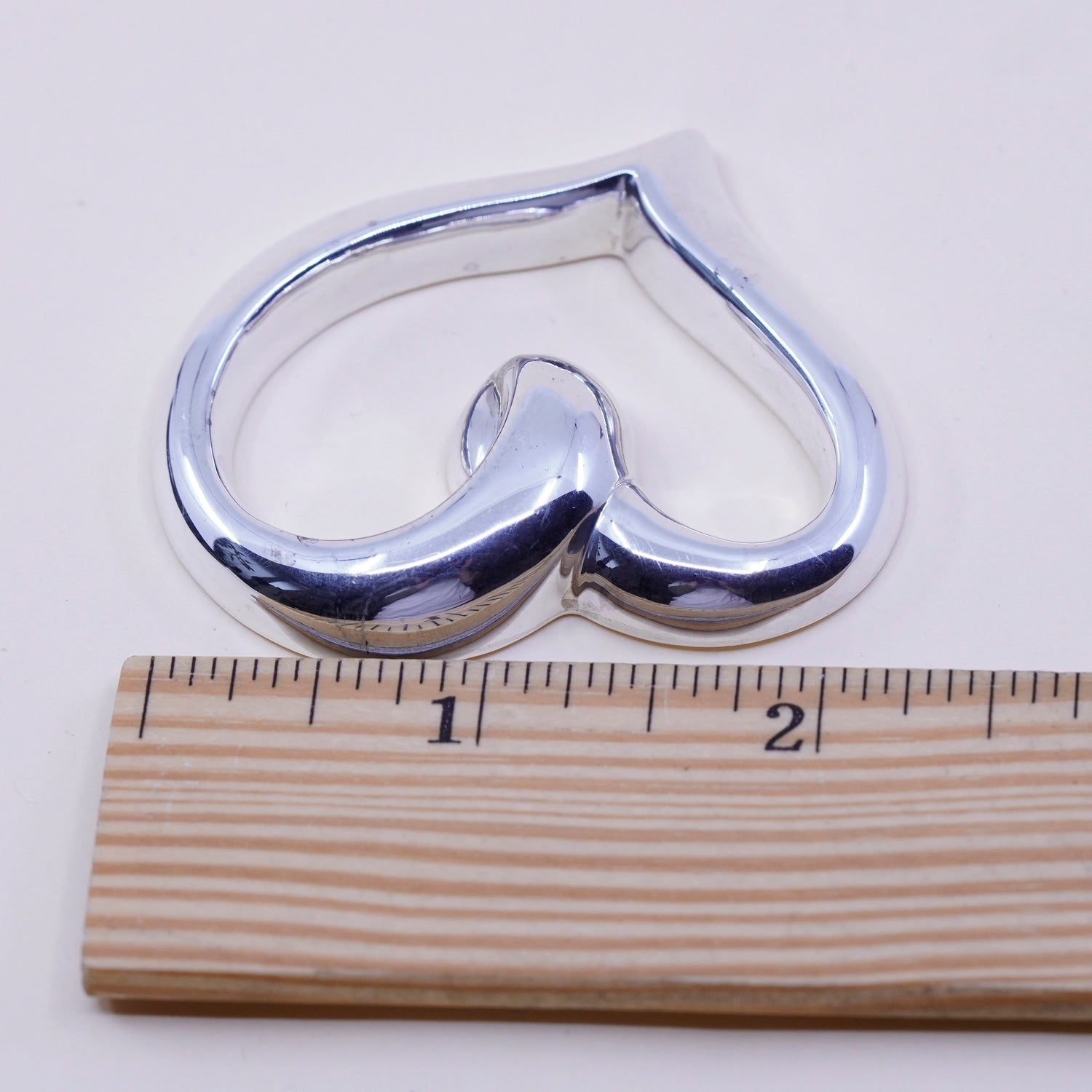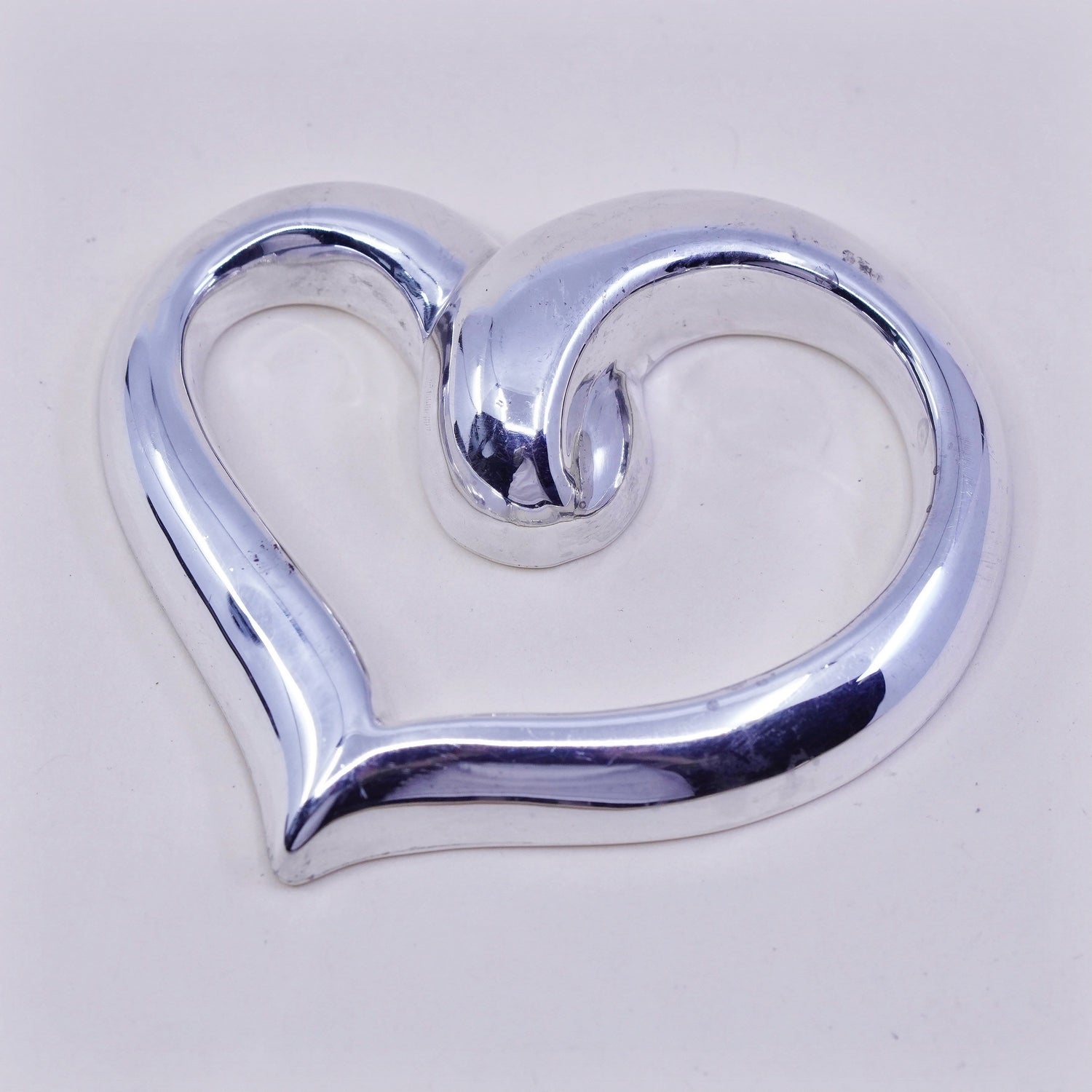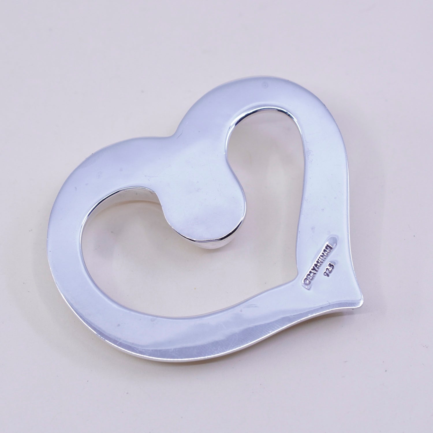 Vintage Bayanihan handmade sterling silver ribbed heart charm, 925 pendant, stamped Bayanihan 925