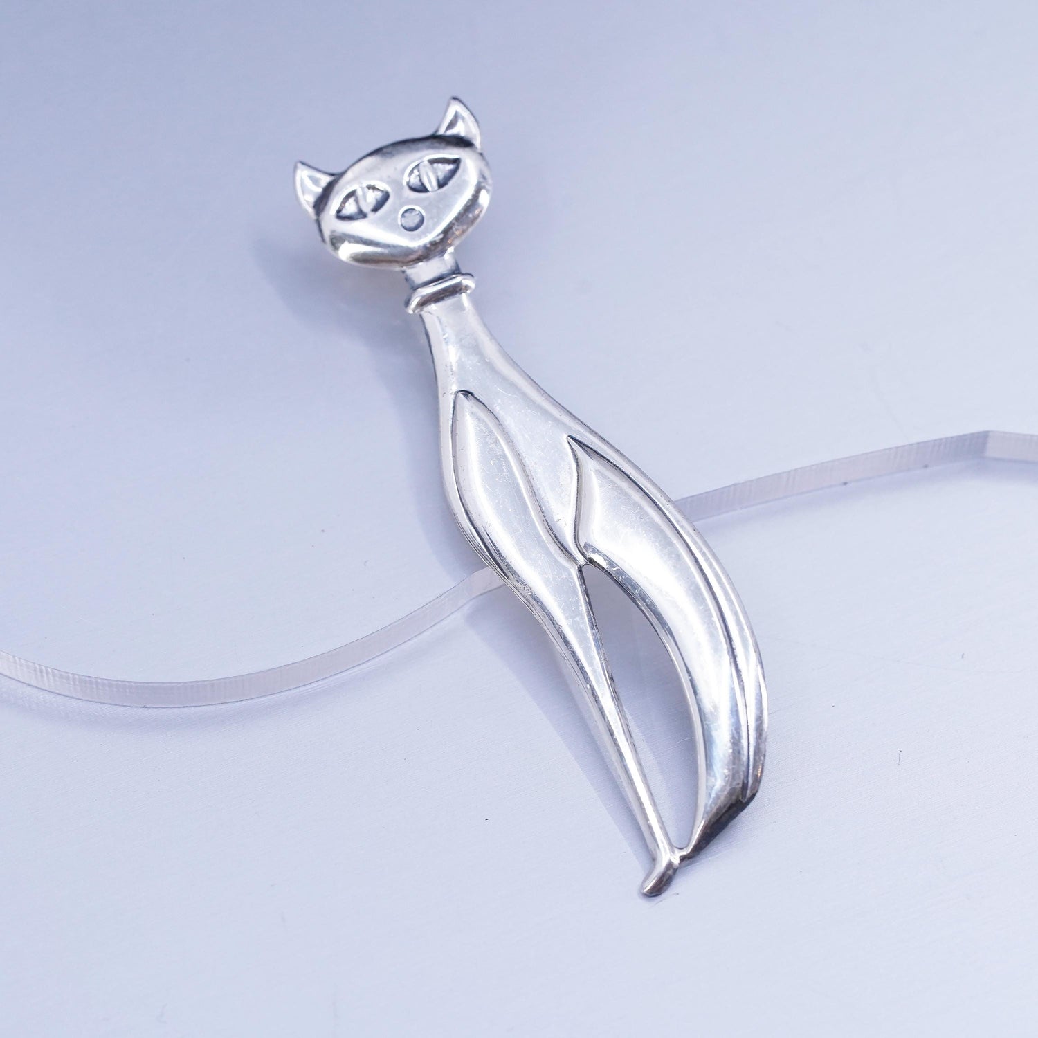 Vintage Beau sterling silver handmade brooch, 925 kitty cat pin
