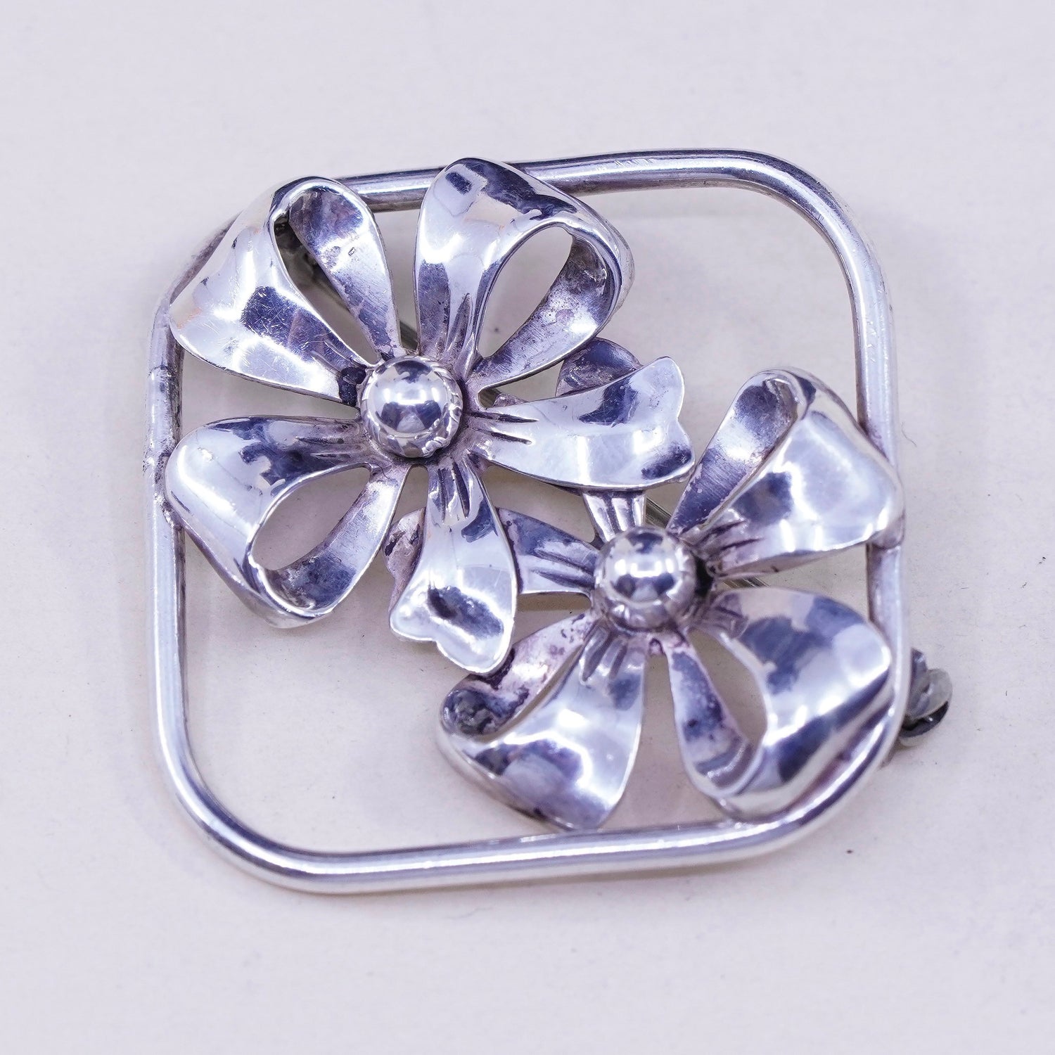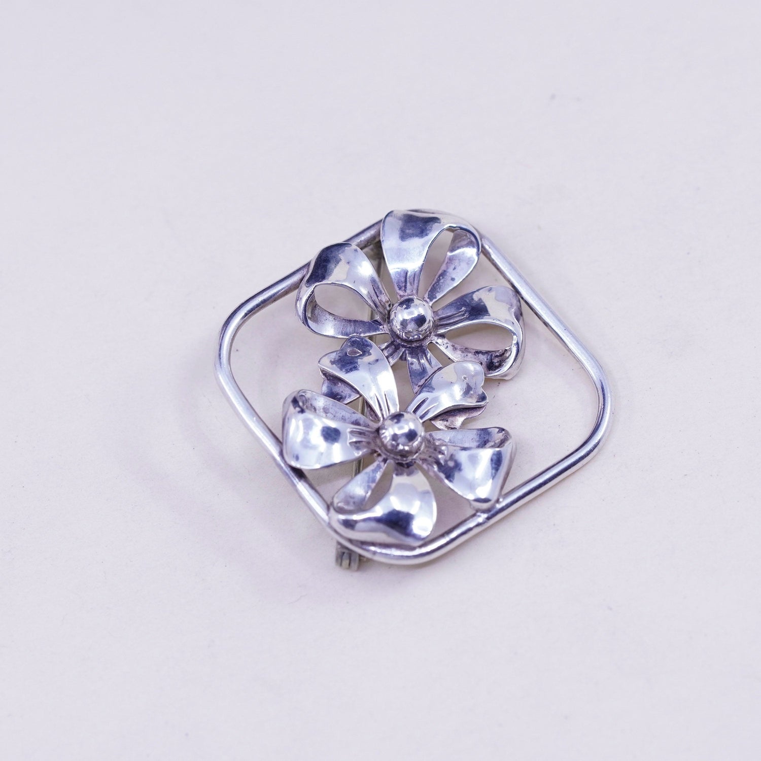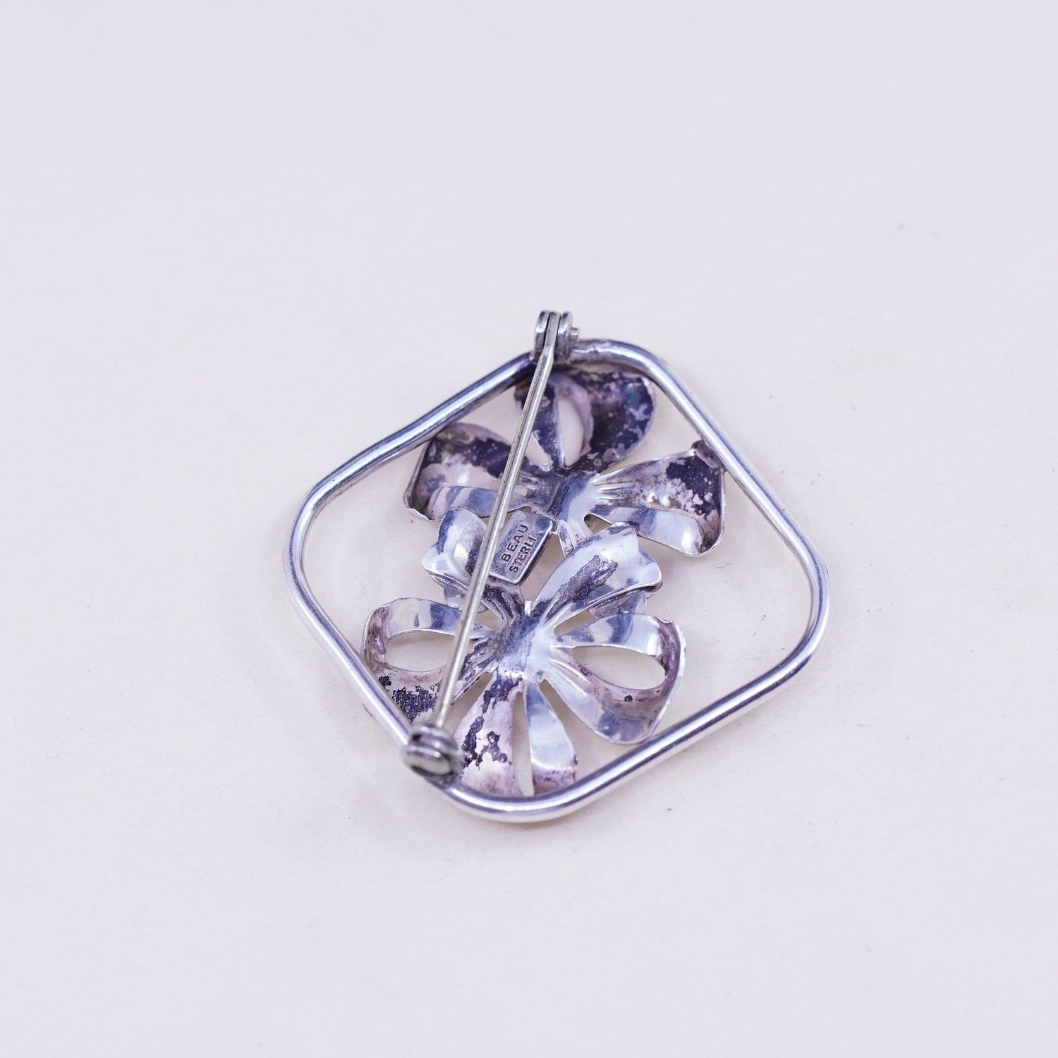 Vintage Beau Sterling silver handmade brooch, 925 ribbon bow tie pin