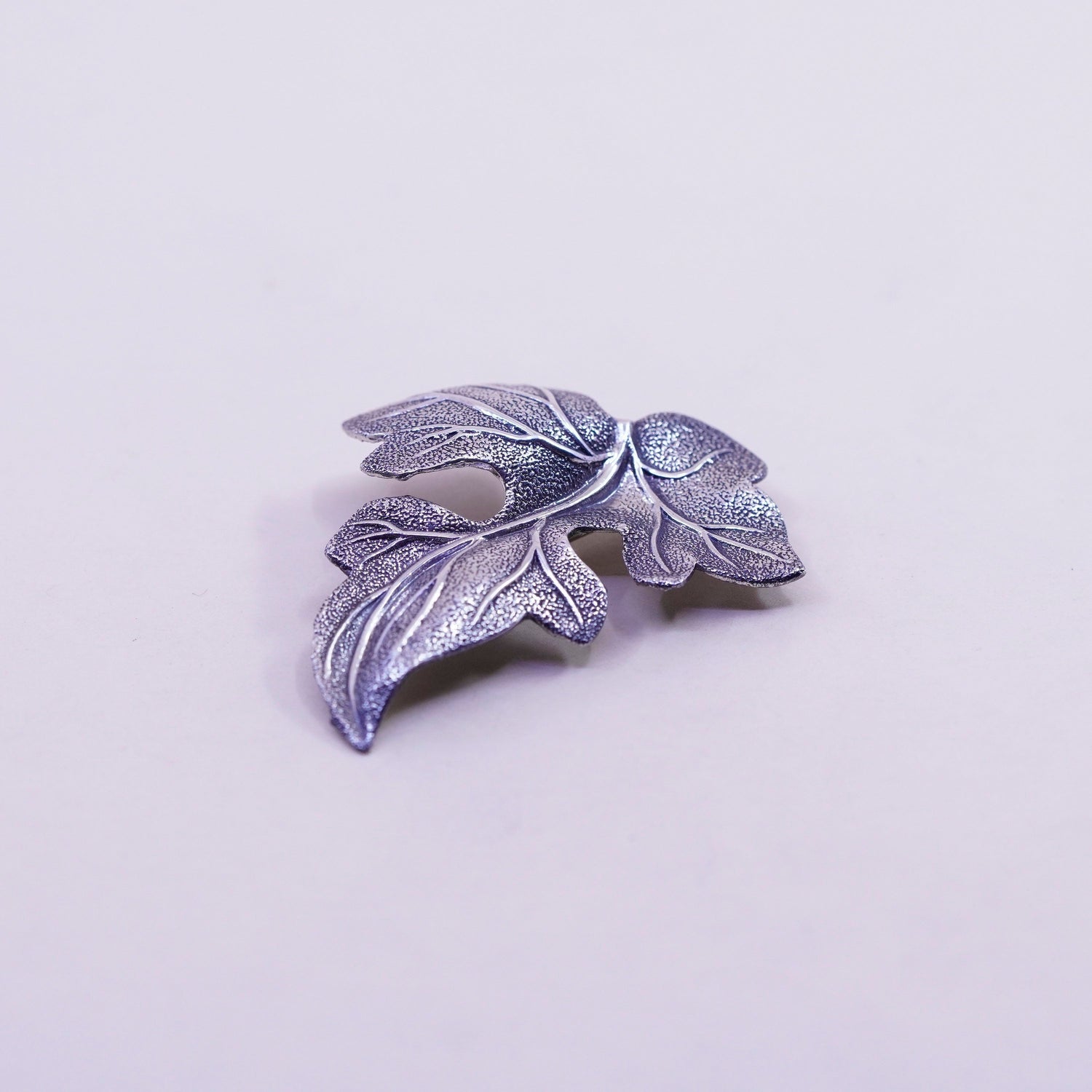 Vintage Beau Sterling silver handmade brooch, solid 925 silver grape leaf pin