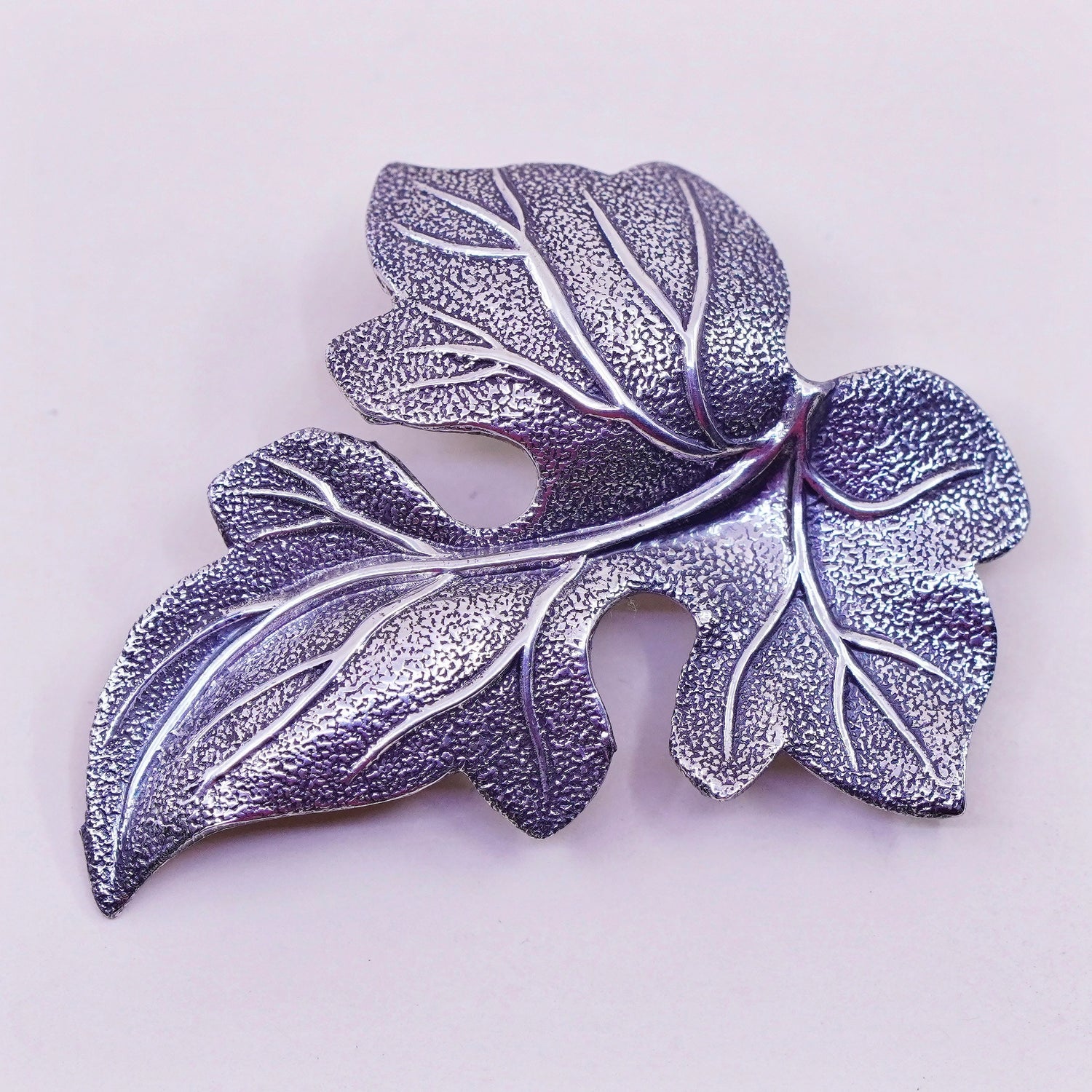 Vintage Beau Sterling silver handmade brooch, solid 925 silver grape leaf pin, Stamped sterling