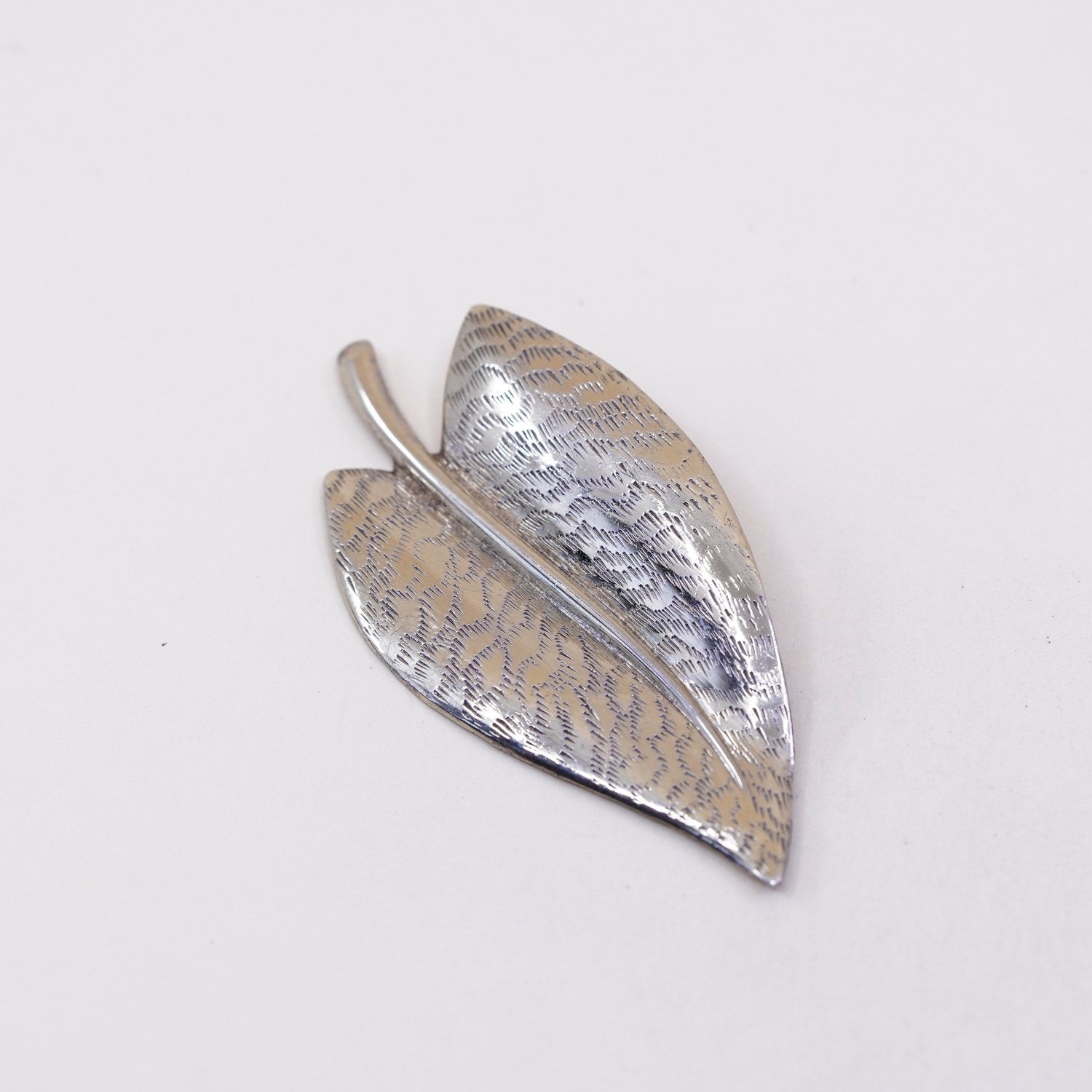 Vintage beau vermeil gold over sterling silver leaf brooch, 925 pin