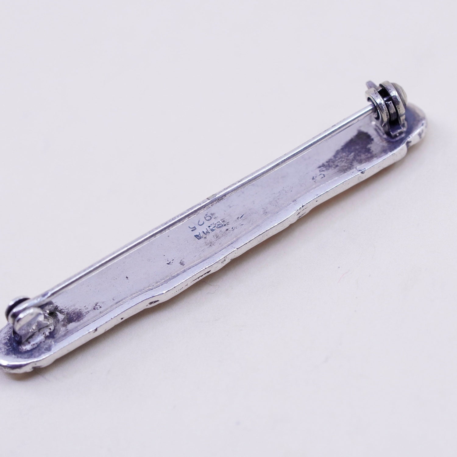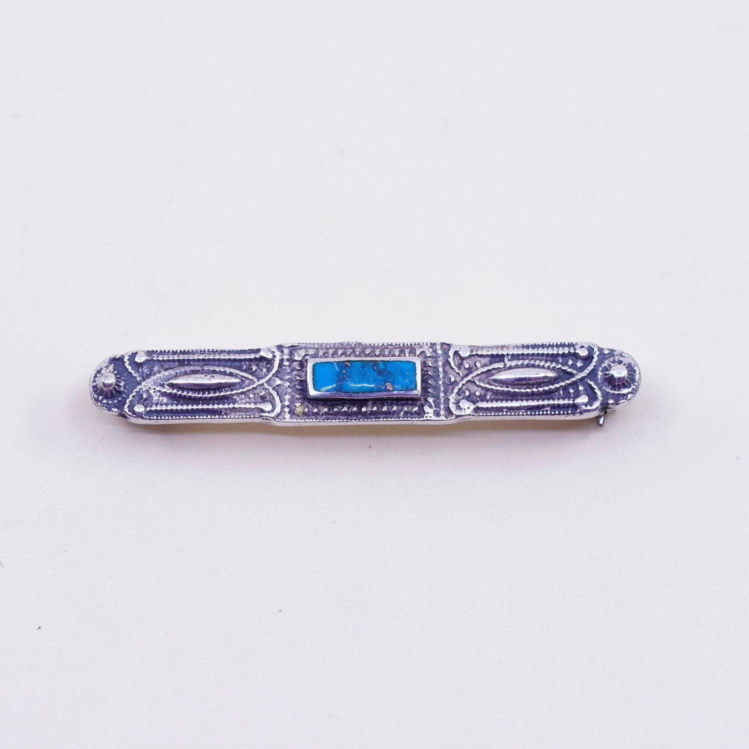 Vintage Boma Sterling 925 silver handmade brooch, long bar pin with blue turquoise, stamped Boma 925