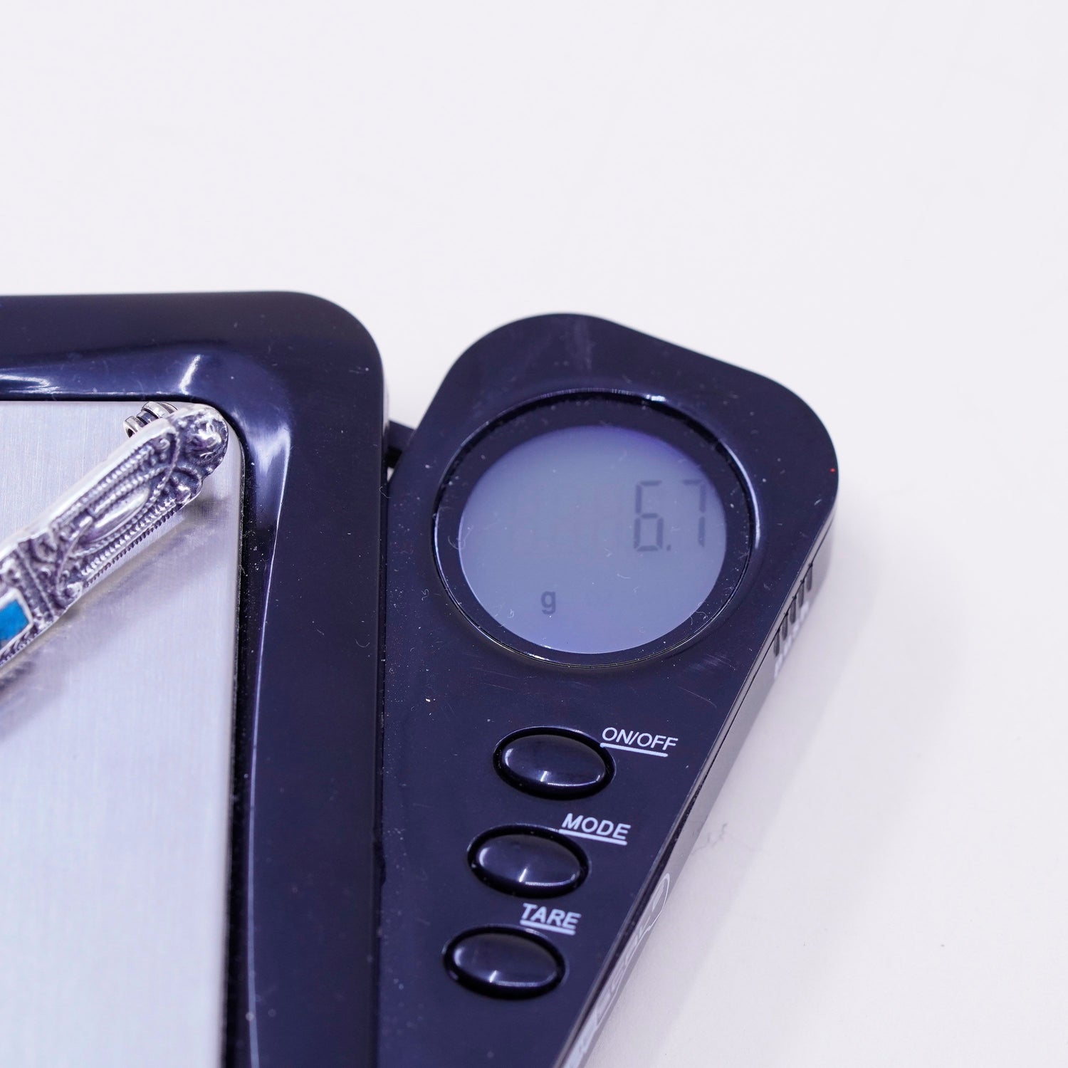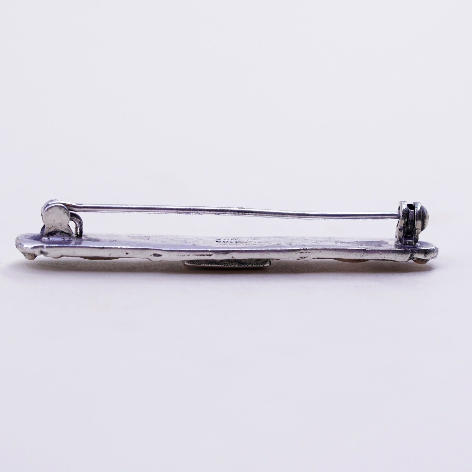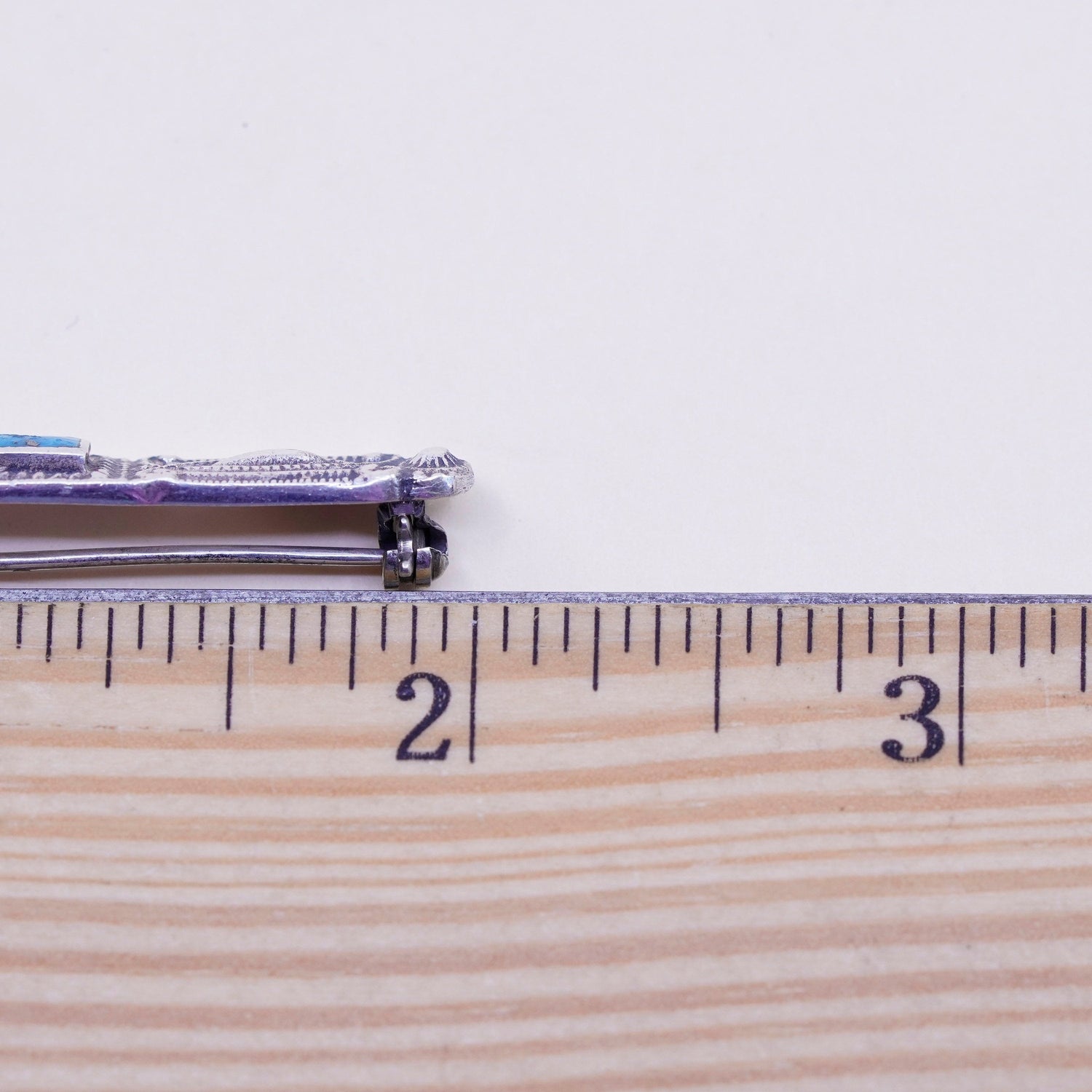 Vintage Boma Sterling 925 silver handmade brooch, long bar pin blue turquoise