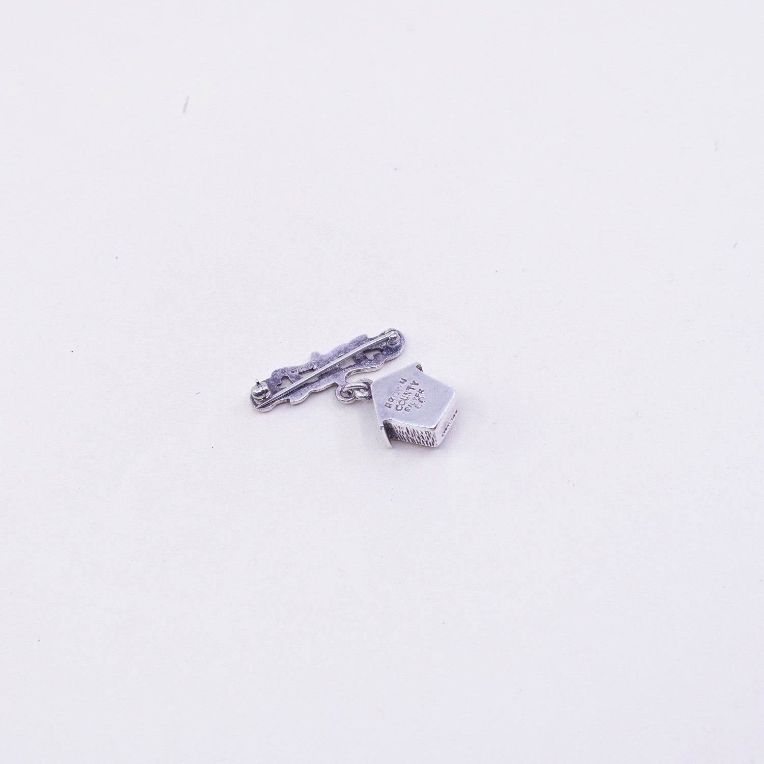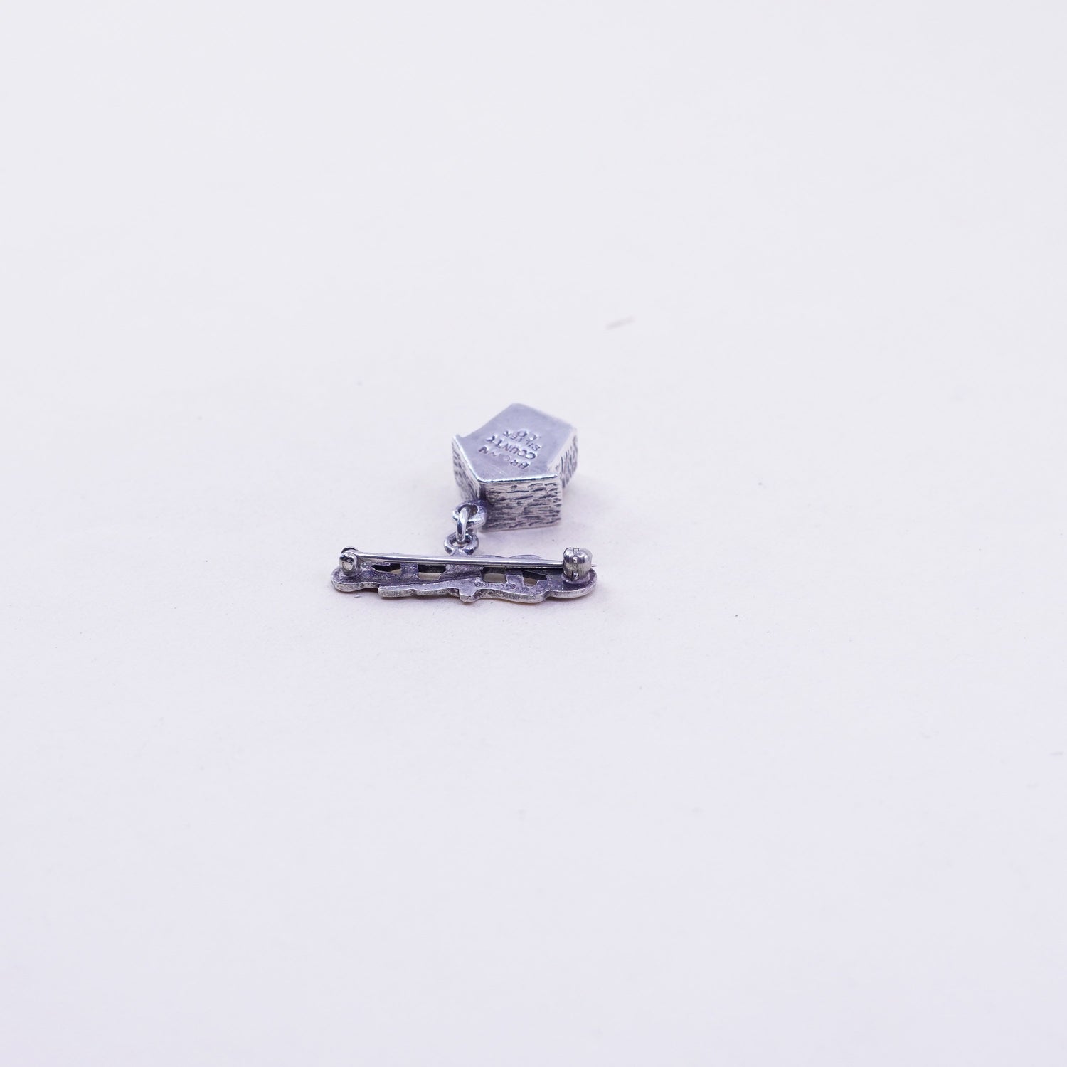 Vintage brown county sterling silver handmade brooch, 925 bird house pin , stamped brown county silver