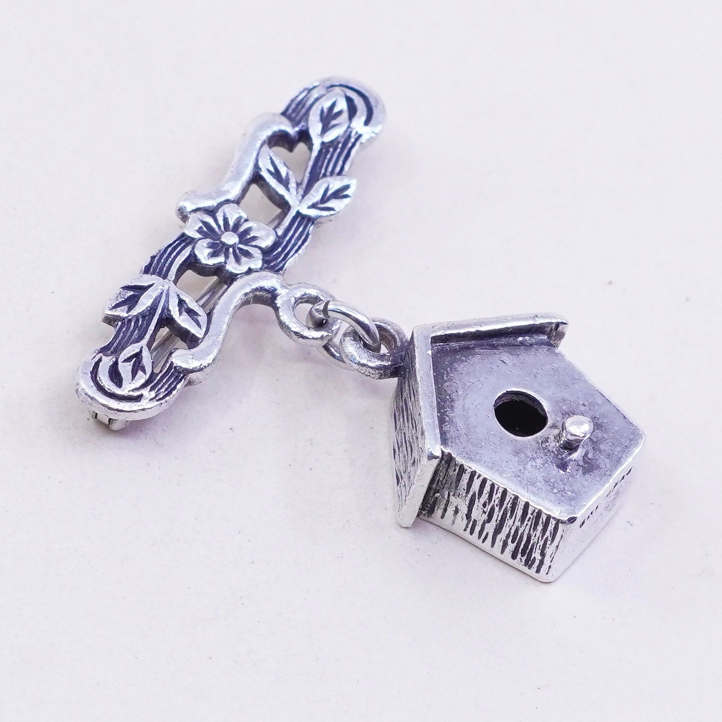 Vintage brown county sterling silver handmade brooch, 925 bird house pin