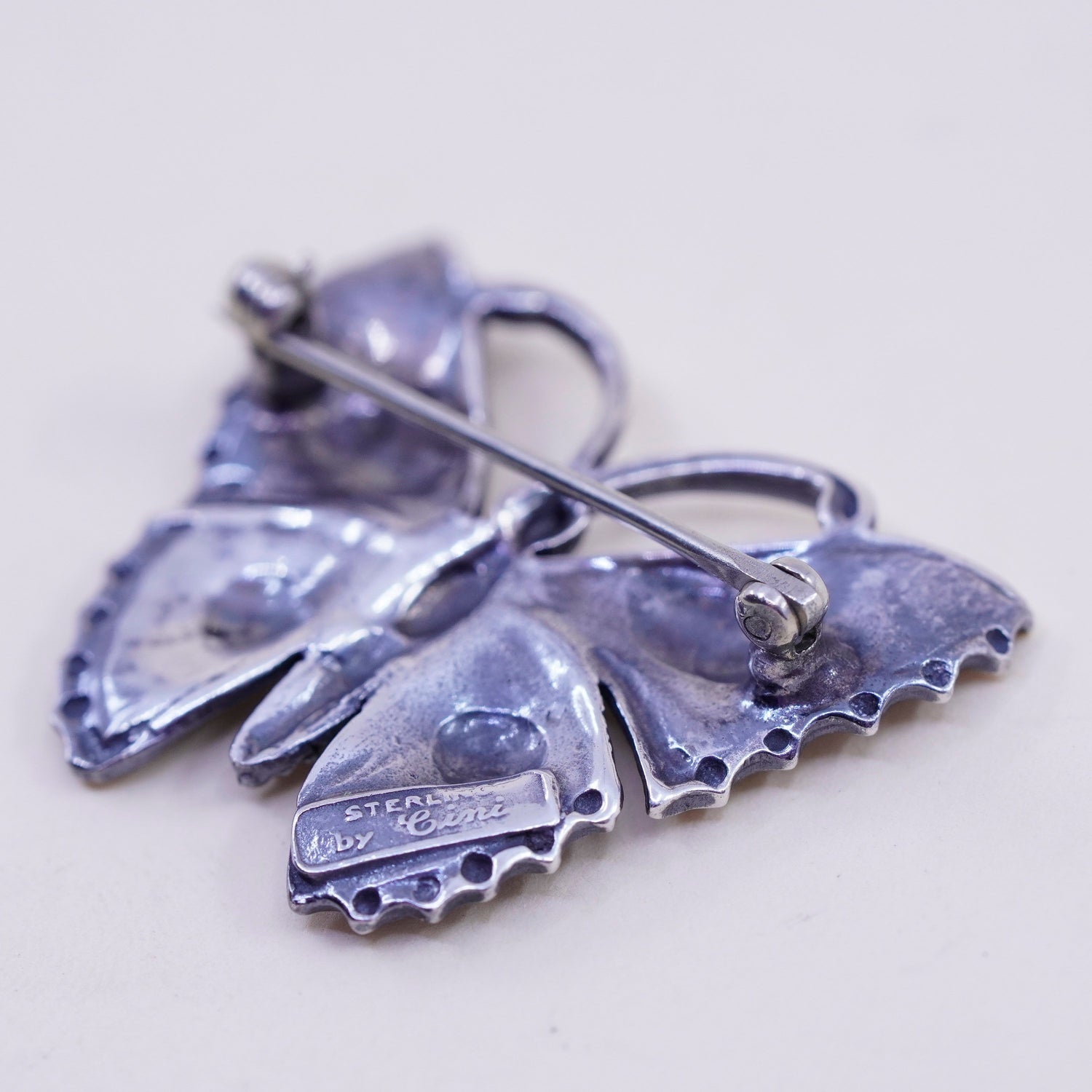 vintage Cini Sterling silver handmade brooch, 925 butterfly pin, stamped Sterling Cini