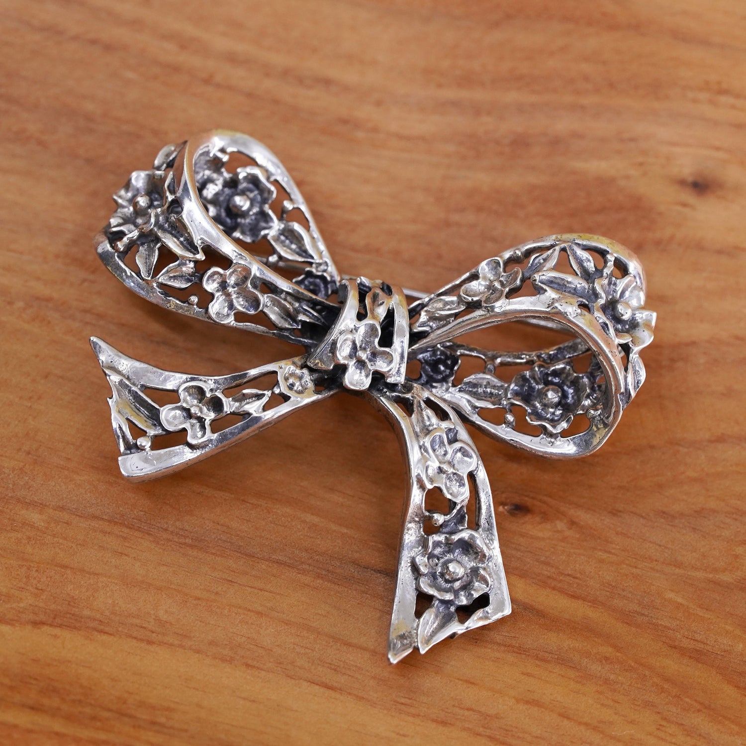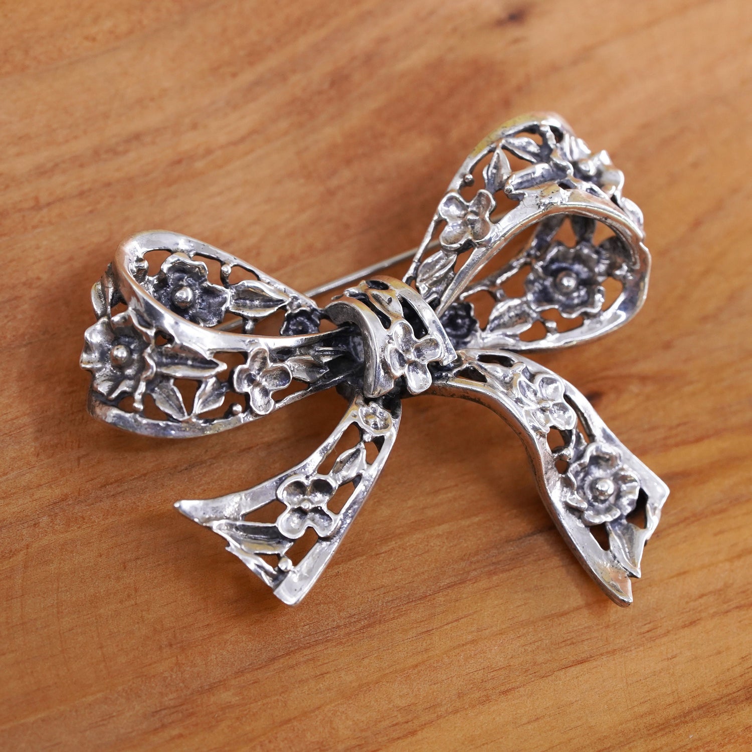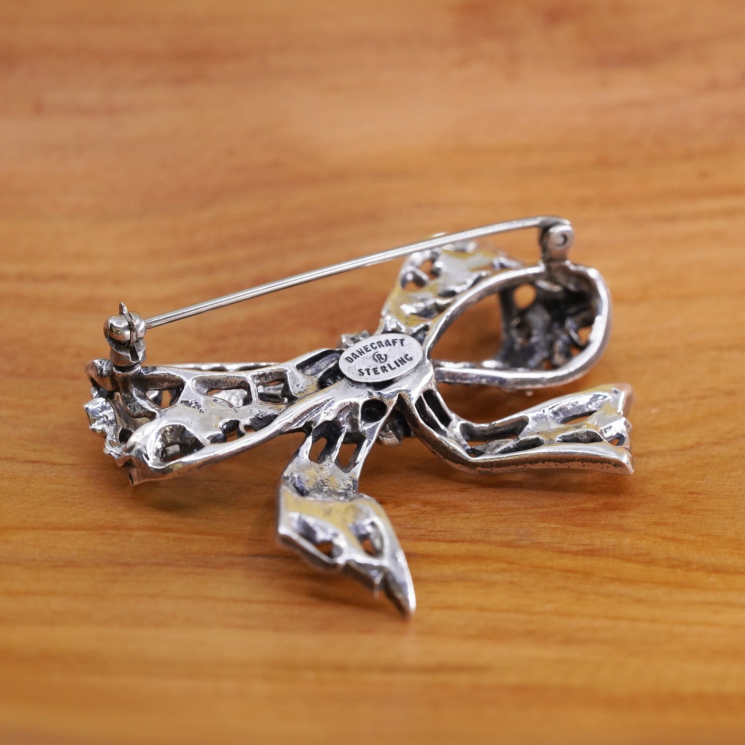 Vintage Danecraft handmade sterling 925 silver ribbon bow tie brooch, stamped sterling Danecraft