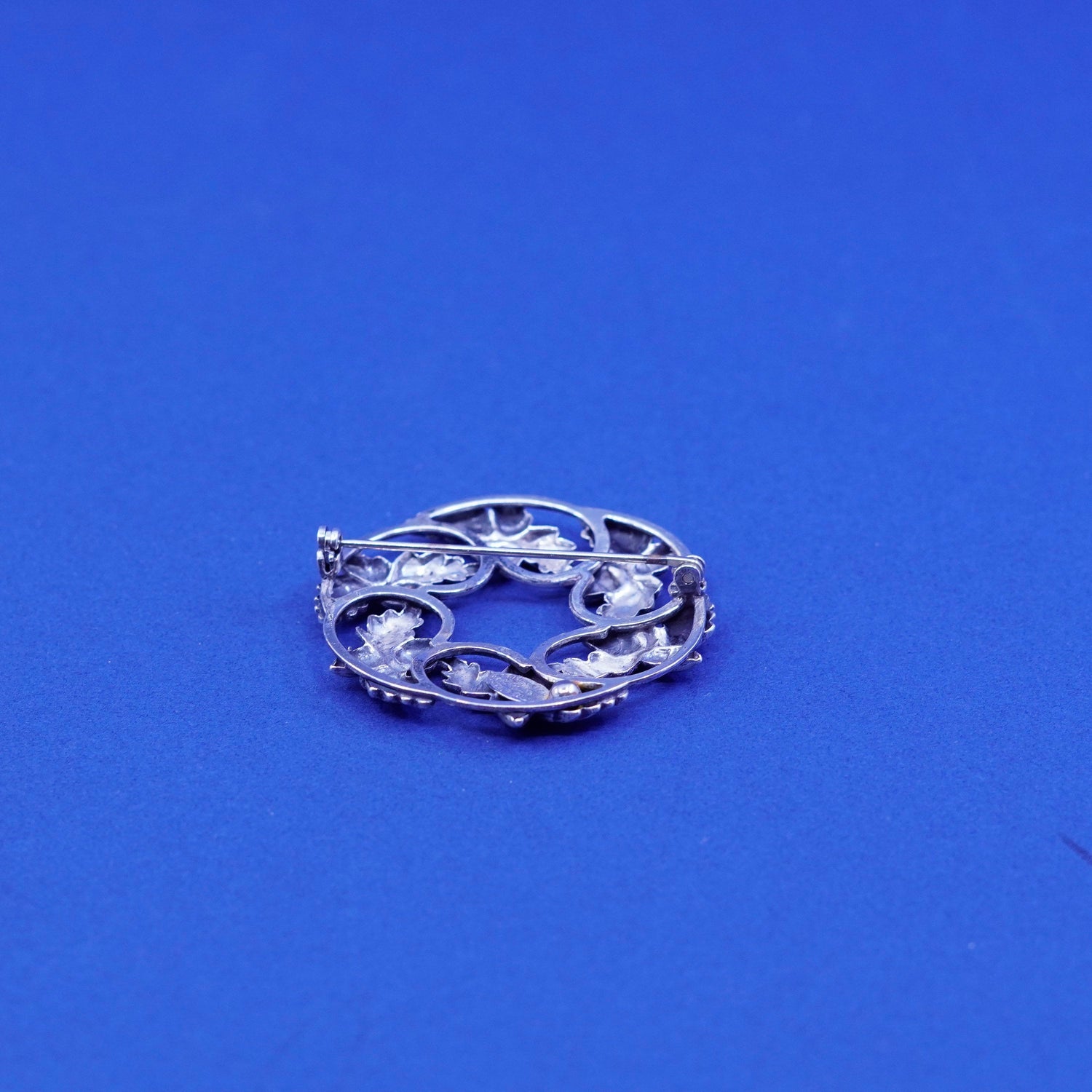 Vintage danecraft sterling 925 silver handmade brooch with dandelion loop pin, stamped Sterling danecraft