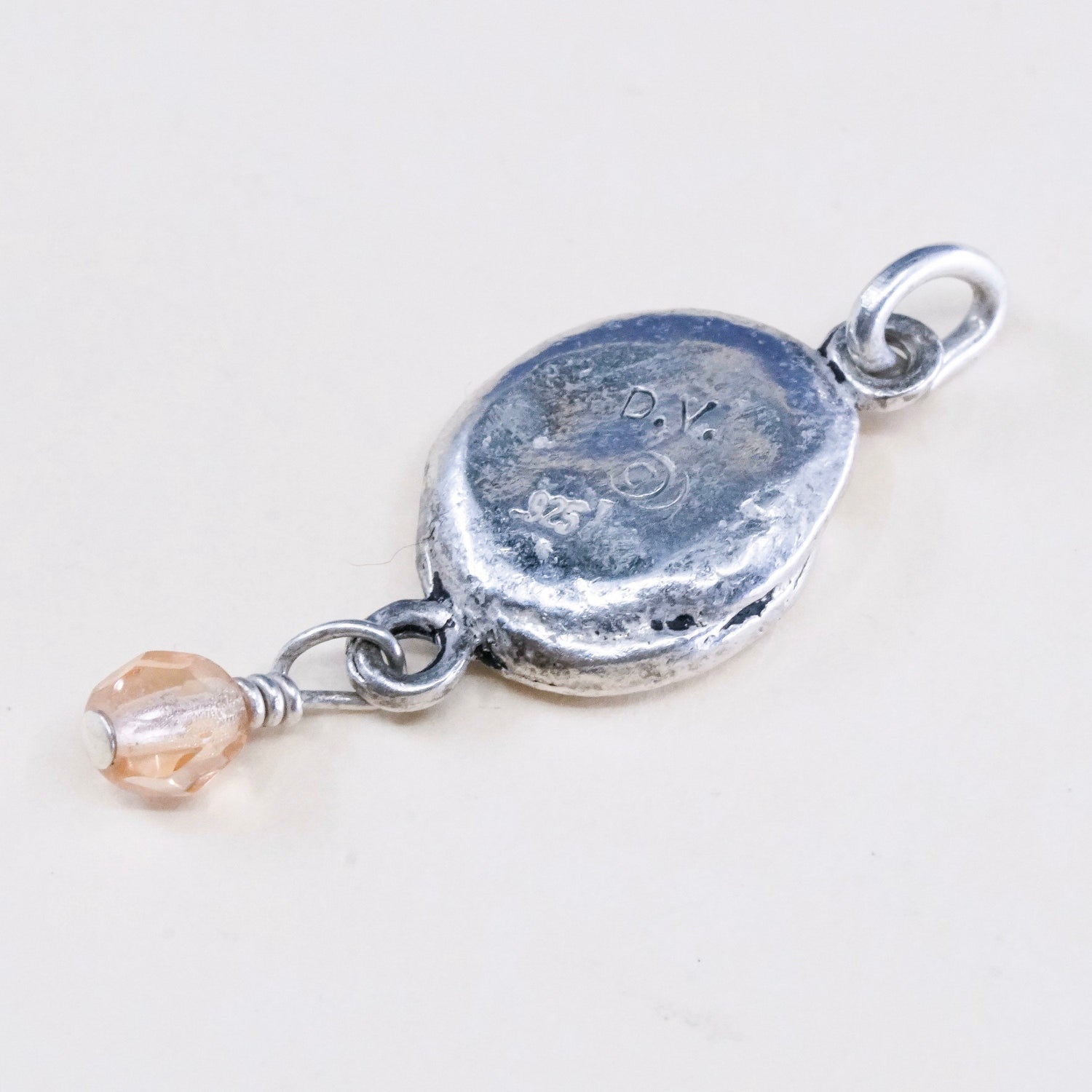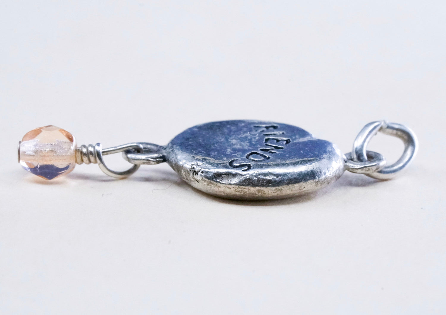 Vintage DV sterling silver Nugget charm, 925 pendant with "friends" embossed, stamped 925 DV