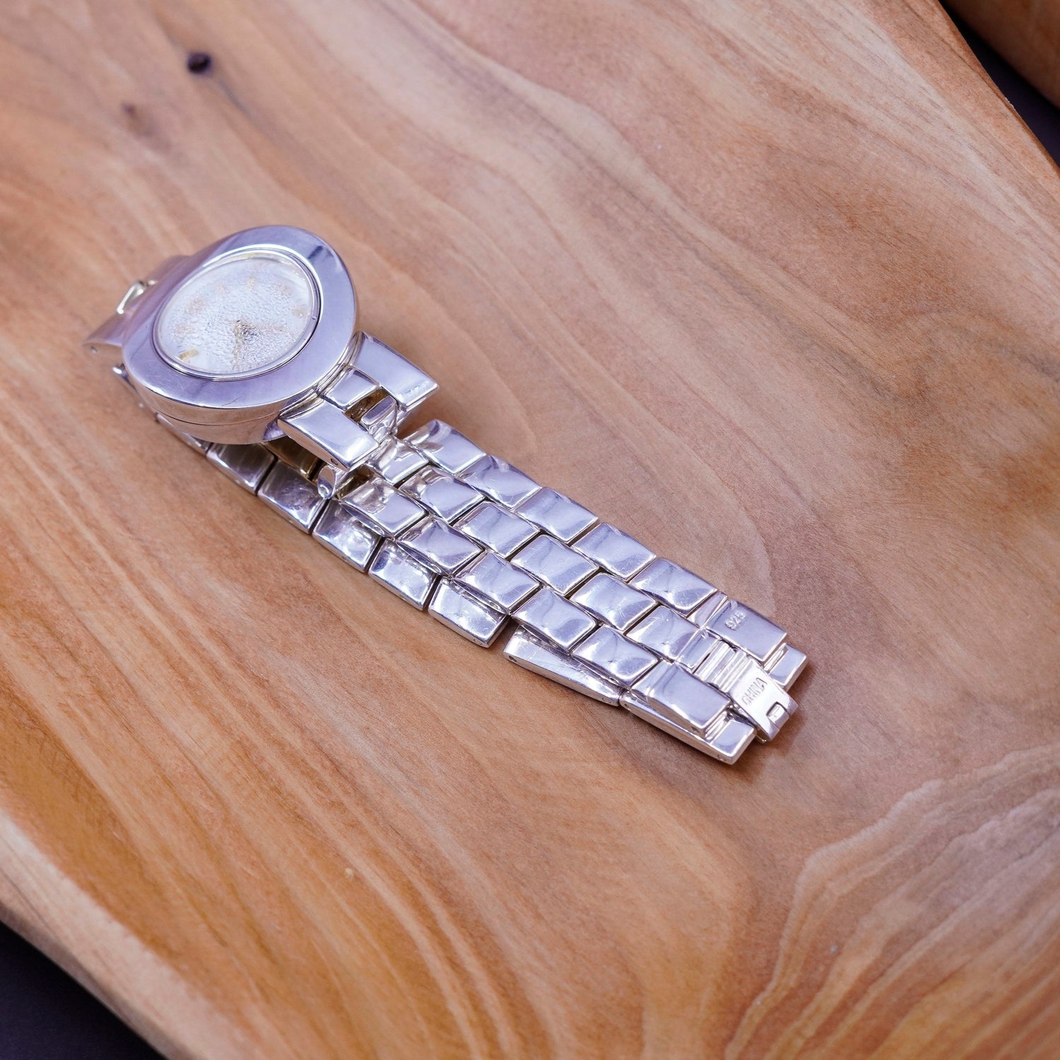 Vintage ecclissi round face watch with sterling 925 silver watch band, Need dehumidify and battery change, stamped 925 China