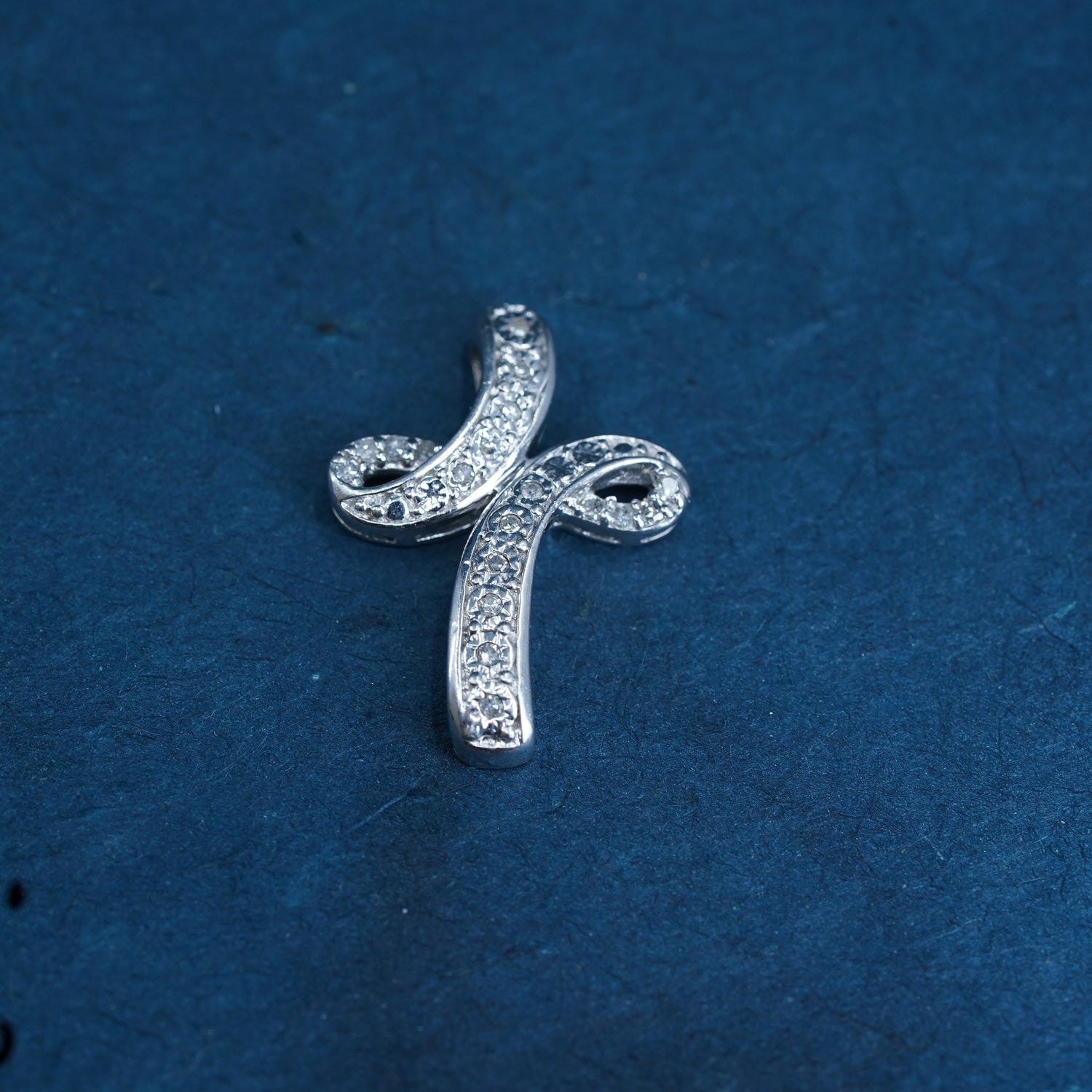 Vintage elegant Sterling silver 925 cross pendant with cluster genuine diamonds, stamped 925