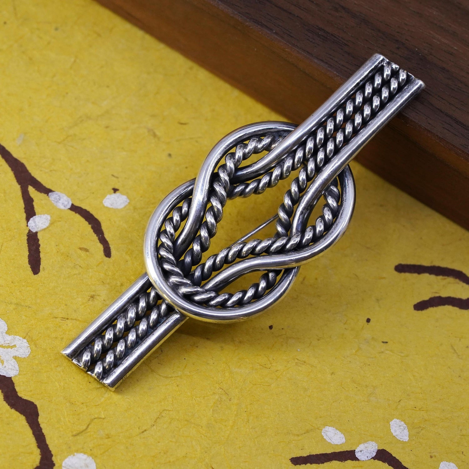 Vintage handmade sterling 925 silver cable knotted brooch, silver tested