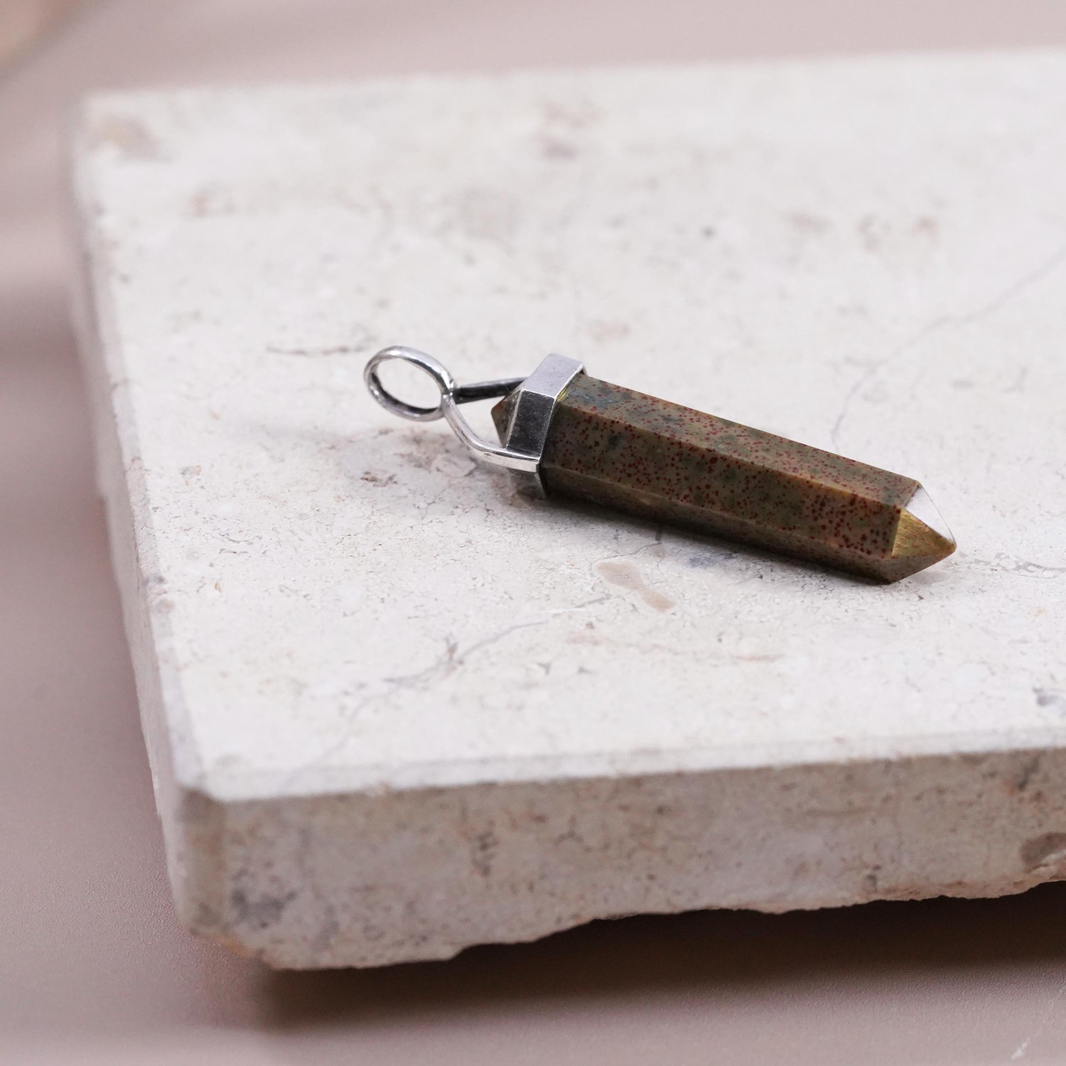 Vintage handmade sterling 925 silver charm pendant healing crystal bloodstone