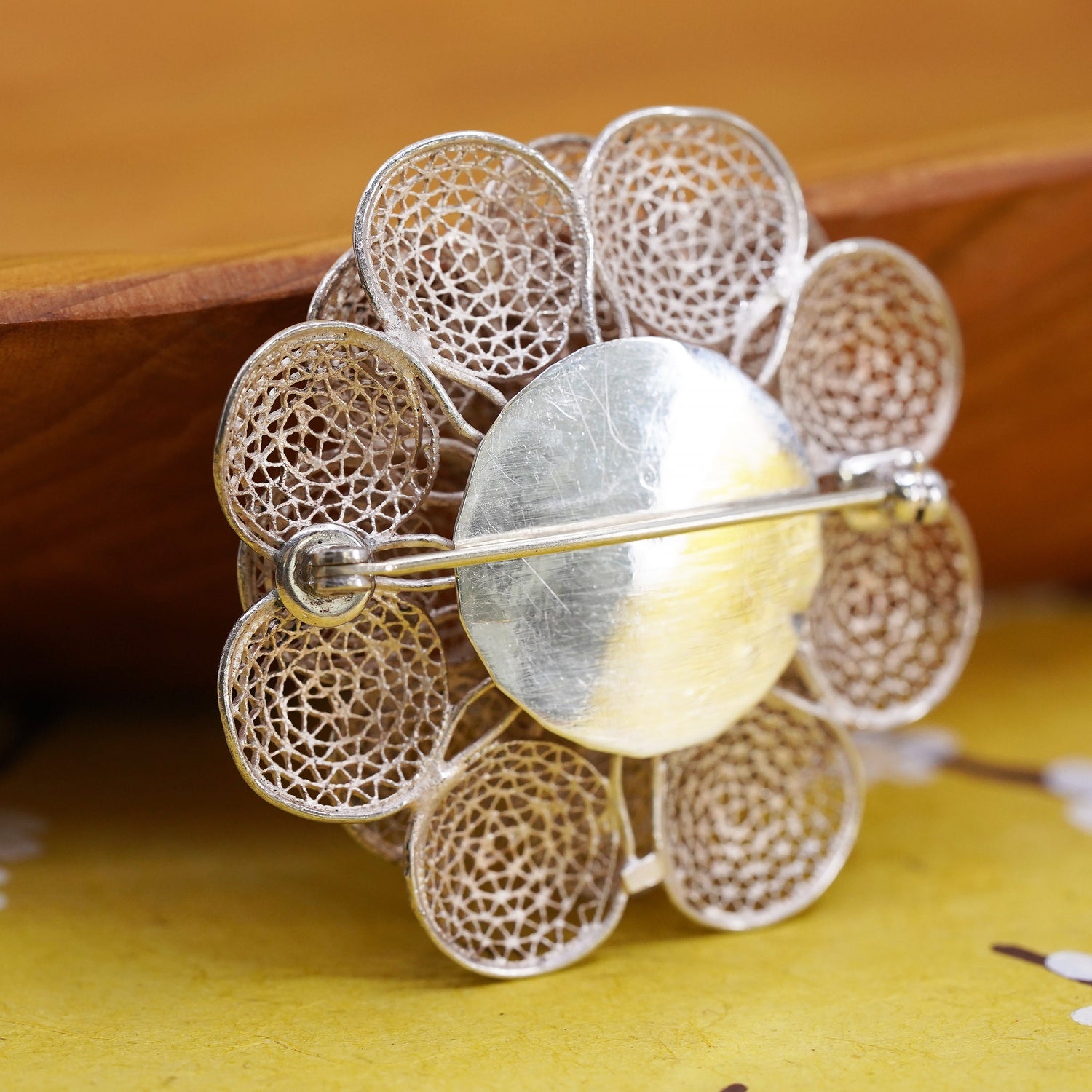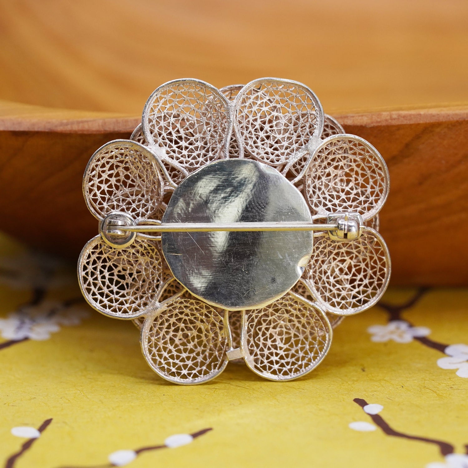 Vintage handmade sterling 925 silver filigree flower brooch