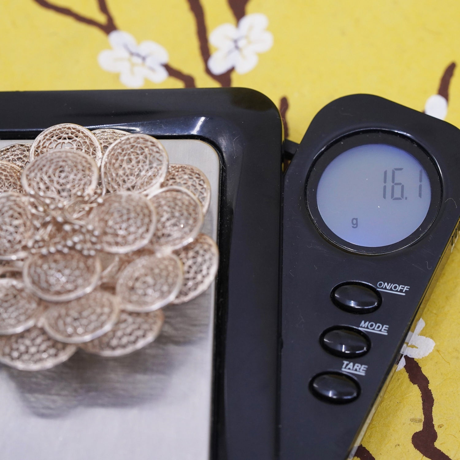 Vintage handmade sterling 925 silver filigree flower brooch, silver tested