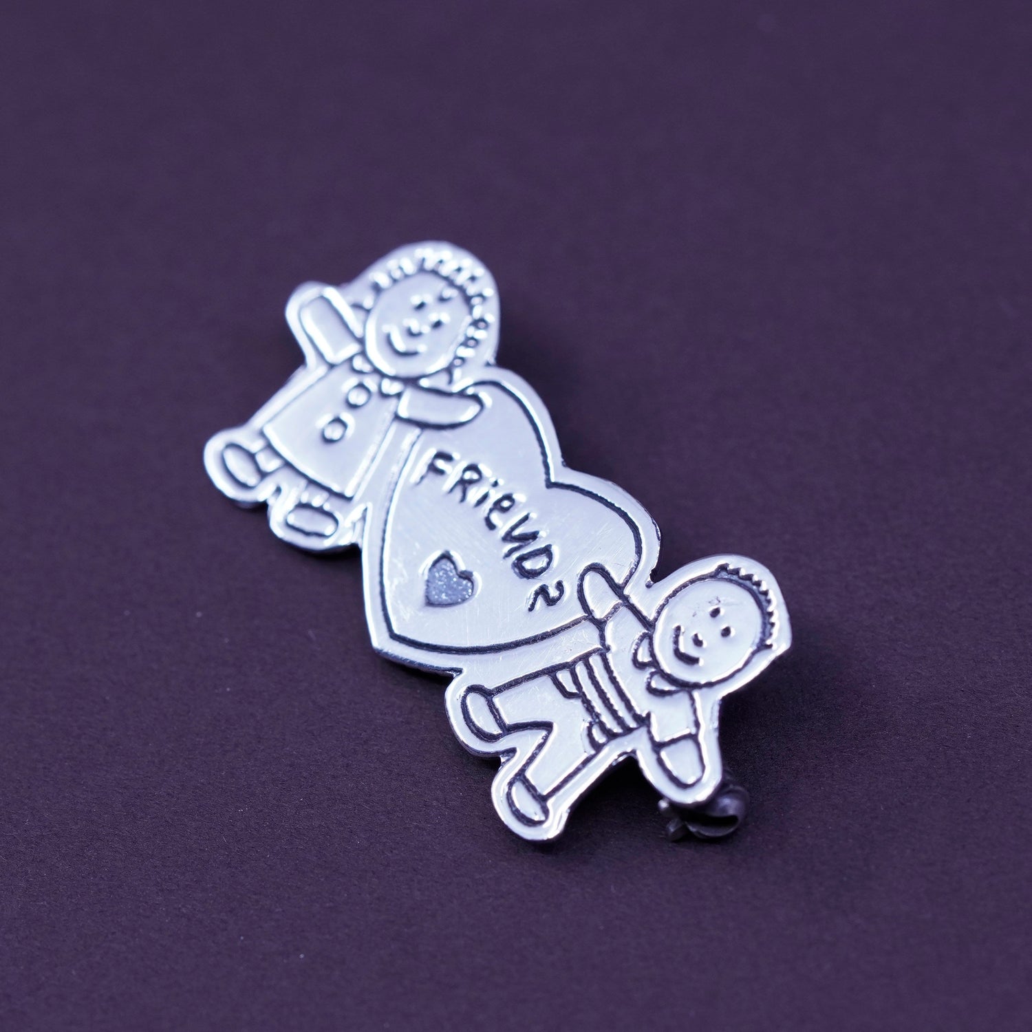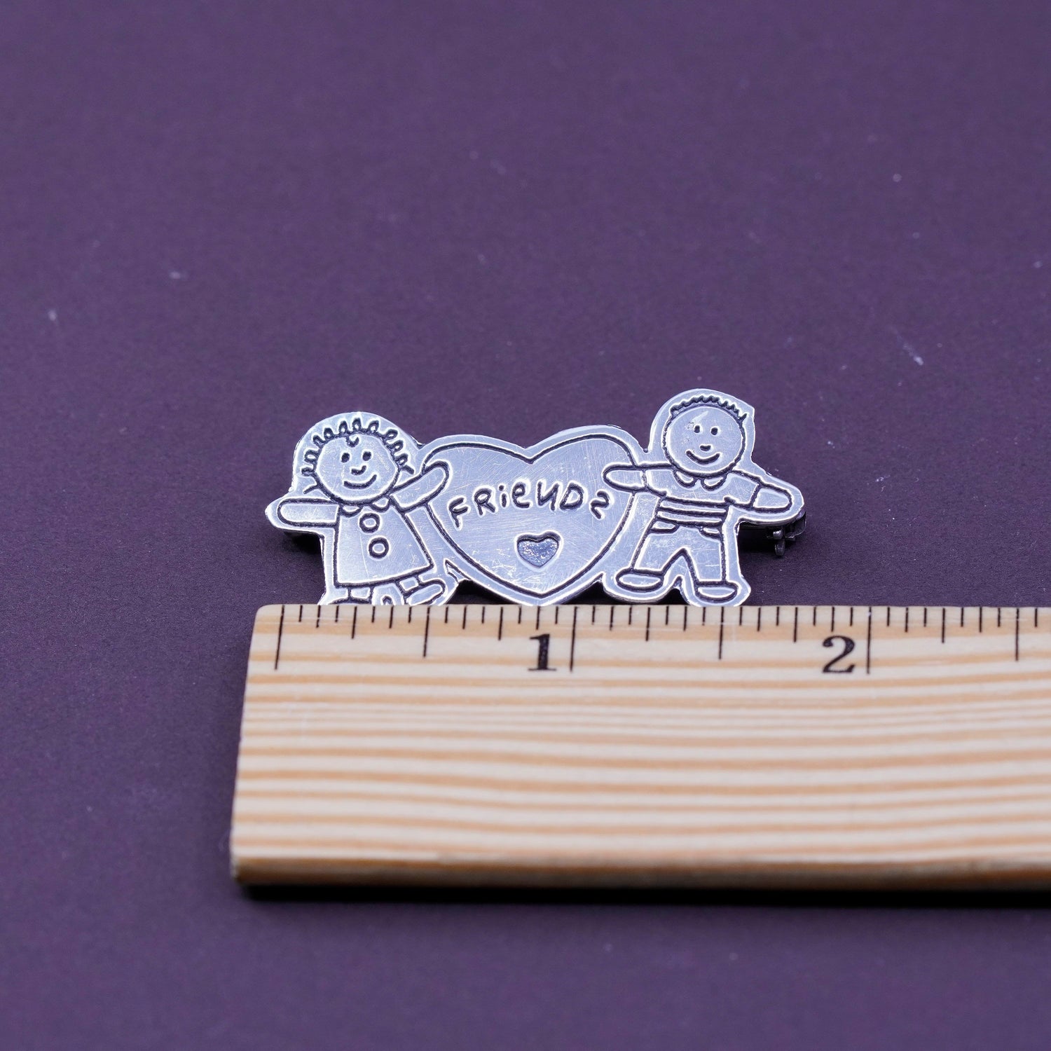 Vintage handmade sterling 925 silver friends friendship brooch, stamped 925