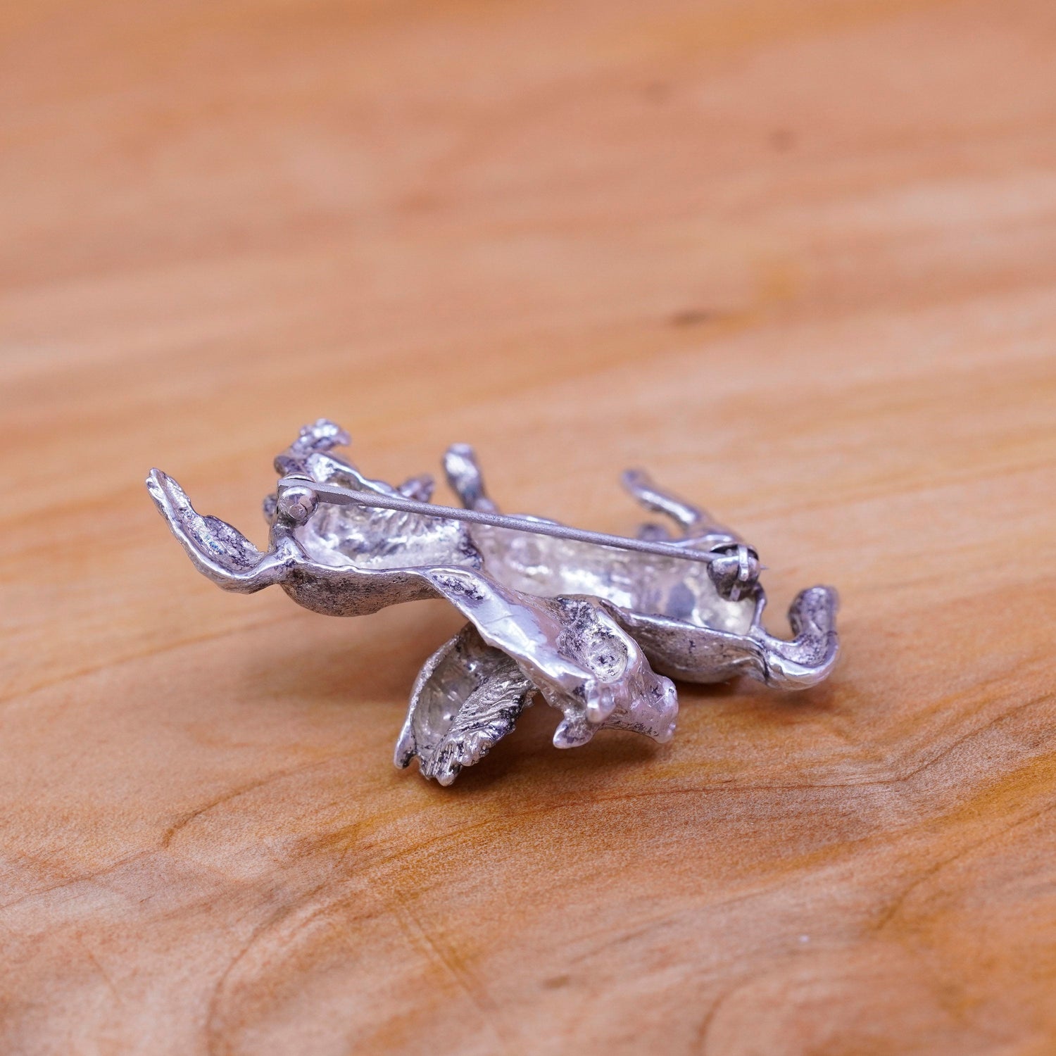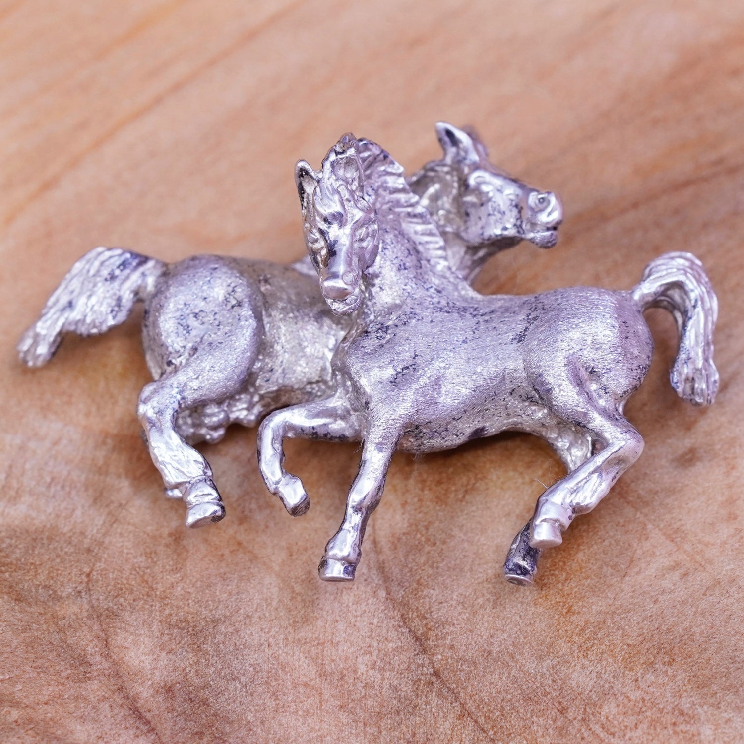 Vintage handmade sterling 925 silver horse matte horses brooch, stamped Ster