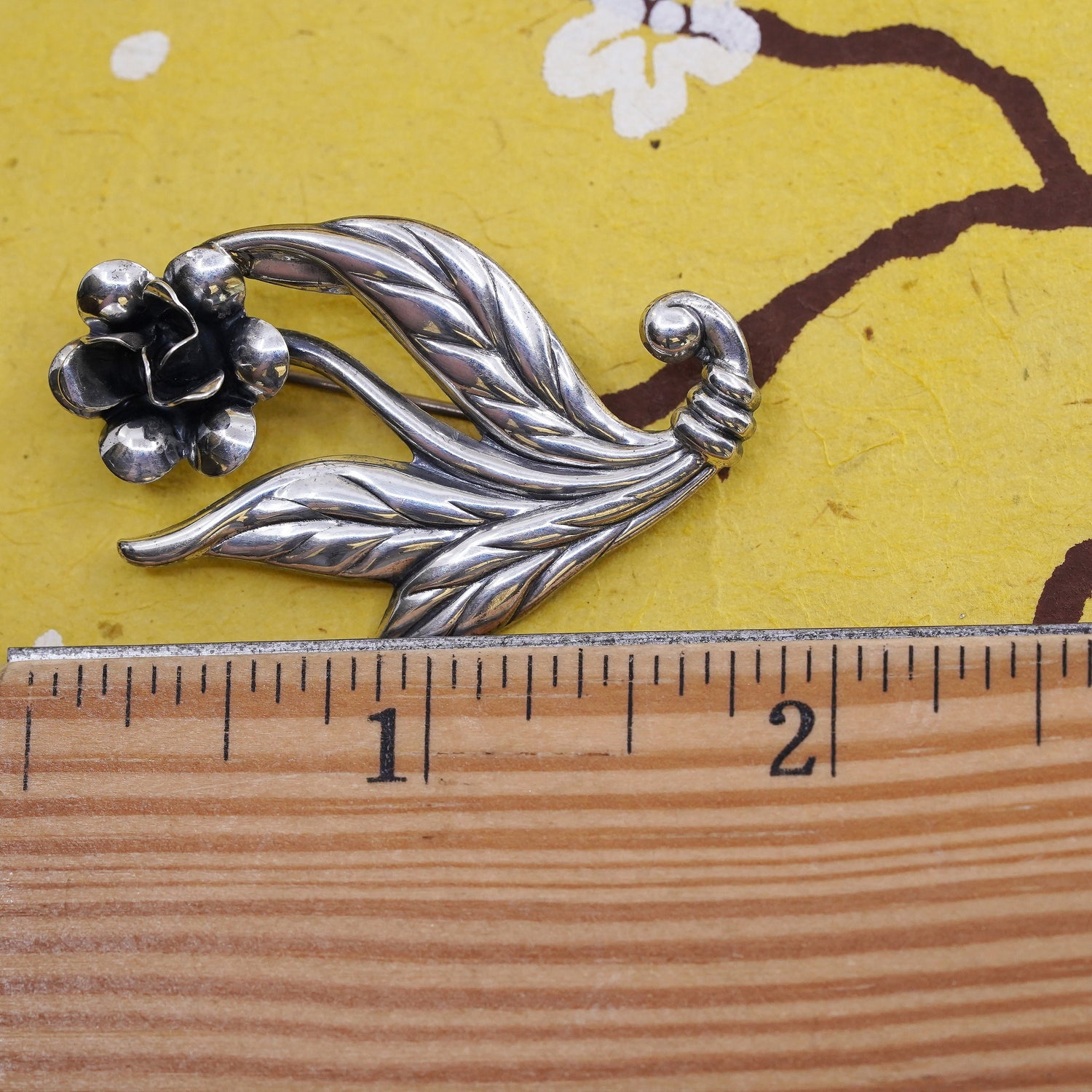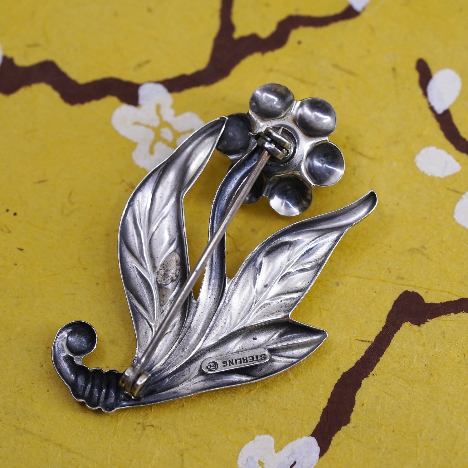 Vintage handmade sterling 925 silver rose flower brooch, stamped sterling