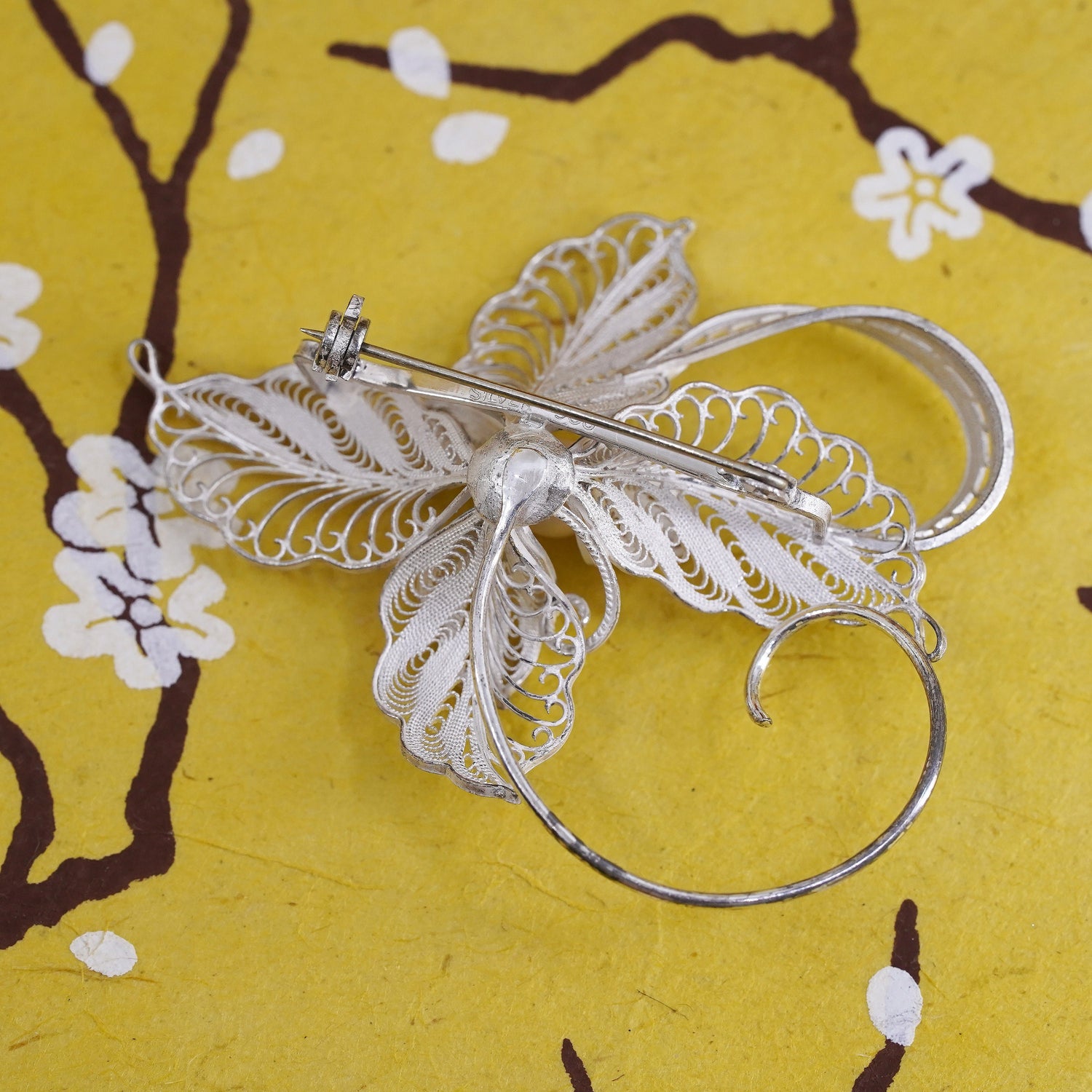 Vintage handmade sterling 950 silver filigree flower brooch with pearl